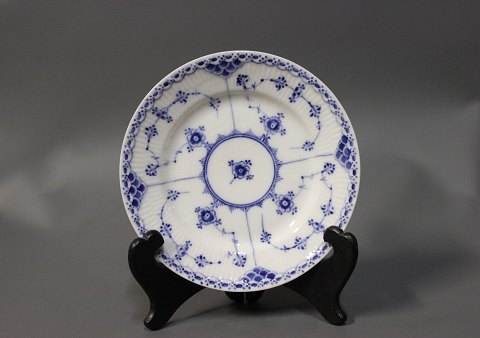 Middagstallerken mærket 1/577 fra Royal Copenhagen. Fremstillet i porcelæn med klassisk musselmalet halvblonde design. Håndmalet i blå dekoration.