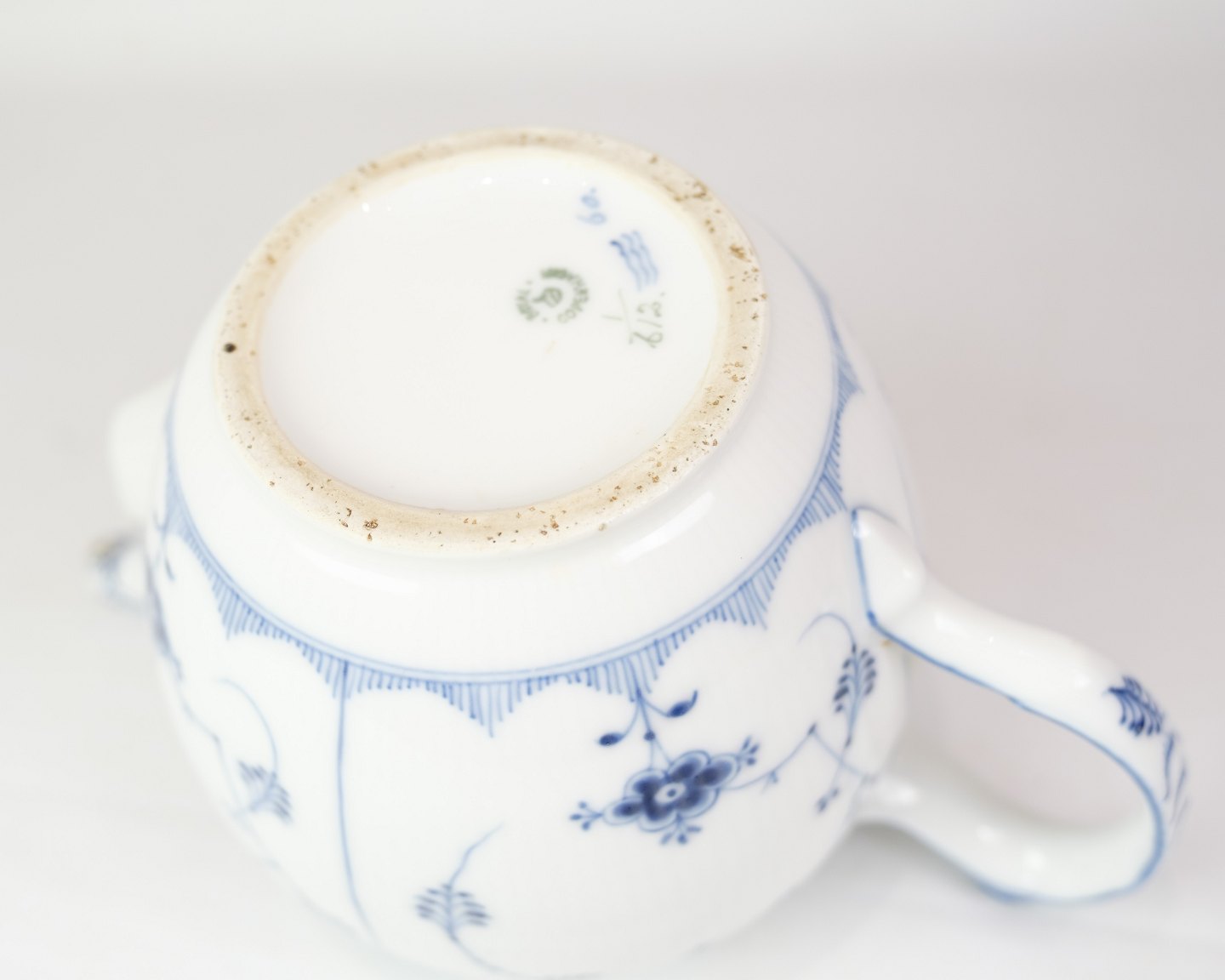 SoldLarge Teapot with Blue Fluted Fluted pattern by Royal Copenhagen model no. 612. Stands with beautiful blue hand-painted pattern.