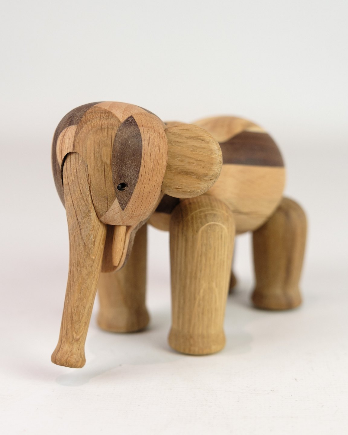 Kay Bojesen Reworked Mini elefant jubilæums model fra 2023 som fejring af 70-års jubilæum. Elefanten er en særudgave som er en del af reworked familien. Elefanten er udført i flere forskellige træsorter heriblandt teak, valnød, eg, ask & ahorn. Reworked udgaven er en del af Kay Bojesens svar på upcycling og genbruge det som ikke ville blive brugt, for også at minimere ressourcespild.