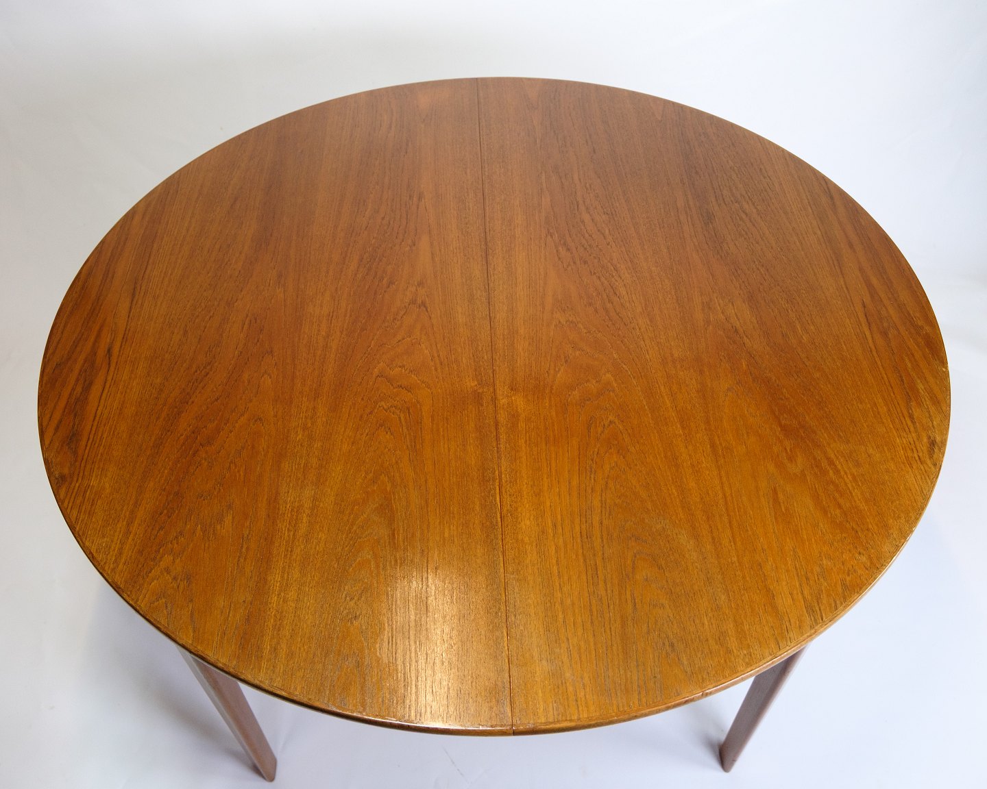 Round teak dining table with four extension leaves, made in Denmark in the 1960s. The table can be extended with up to four leaves, which is rare and provides great flexibility.