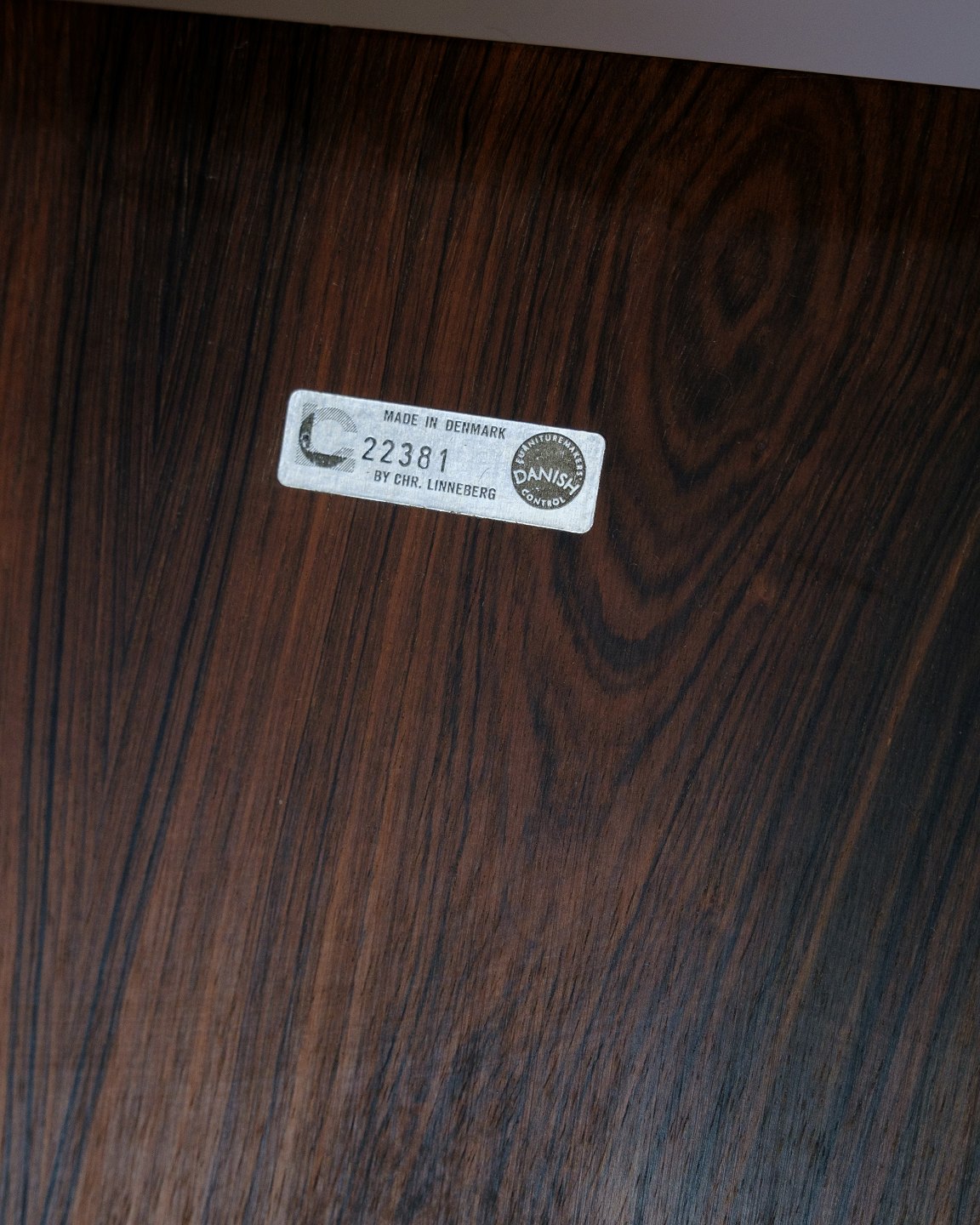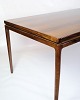 Dining table with extension in rosewood, designed by Johannes Andersen and produced by Chr. Linnebergs Møbelfabrik in the 1960s. The table has an integrated extension hidden in the frame for an elegant and coherent expression. Johannes Andersen (1903–1991) is known for his organic design and use of noble materials. A classic example of Danish mid-century design.