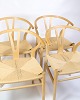 SolgtSæt af fire Y-stole, model CH24, designet af Hans J. Wegner og produceret af Carl Hansen & Søn. Udført i bøg med håndflettet sæde i papirgarn. Hans J. Wegner (1914–2007) var en dansk møbeldesigner, der skabte over 500 stole med fokus på funktion, håndværk og enkel formgivning. Y-stolen er et af hans mest kendte værker og et fast ikon i dansk møbeltradition.