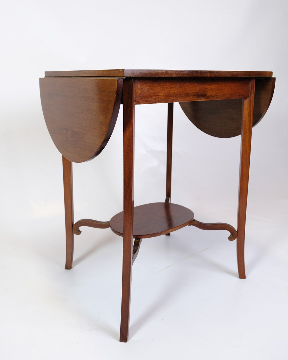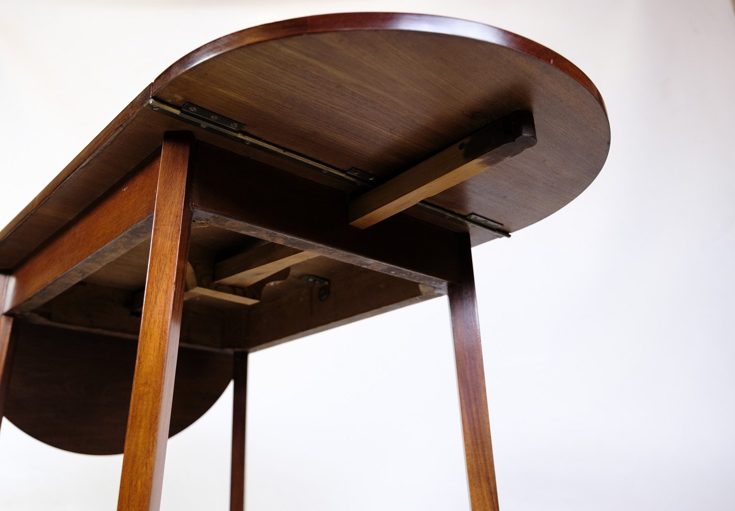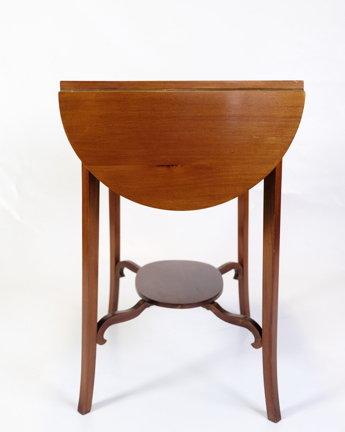 SolgtSidebord med klapper i mahogni, fremstillet i Danmark i 1960’erne. Bordet har to klapbare plader, der giver fleksibel bordplads, samt en underhylde til ekstra opbevaring. Udført i mahogni med fine buede ben og klassiske detaljer.