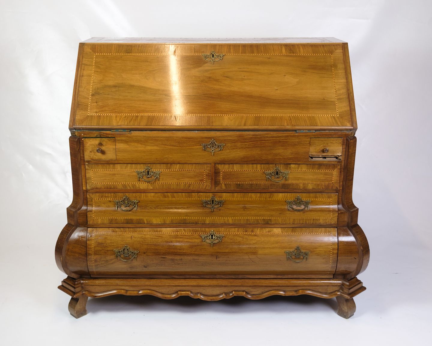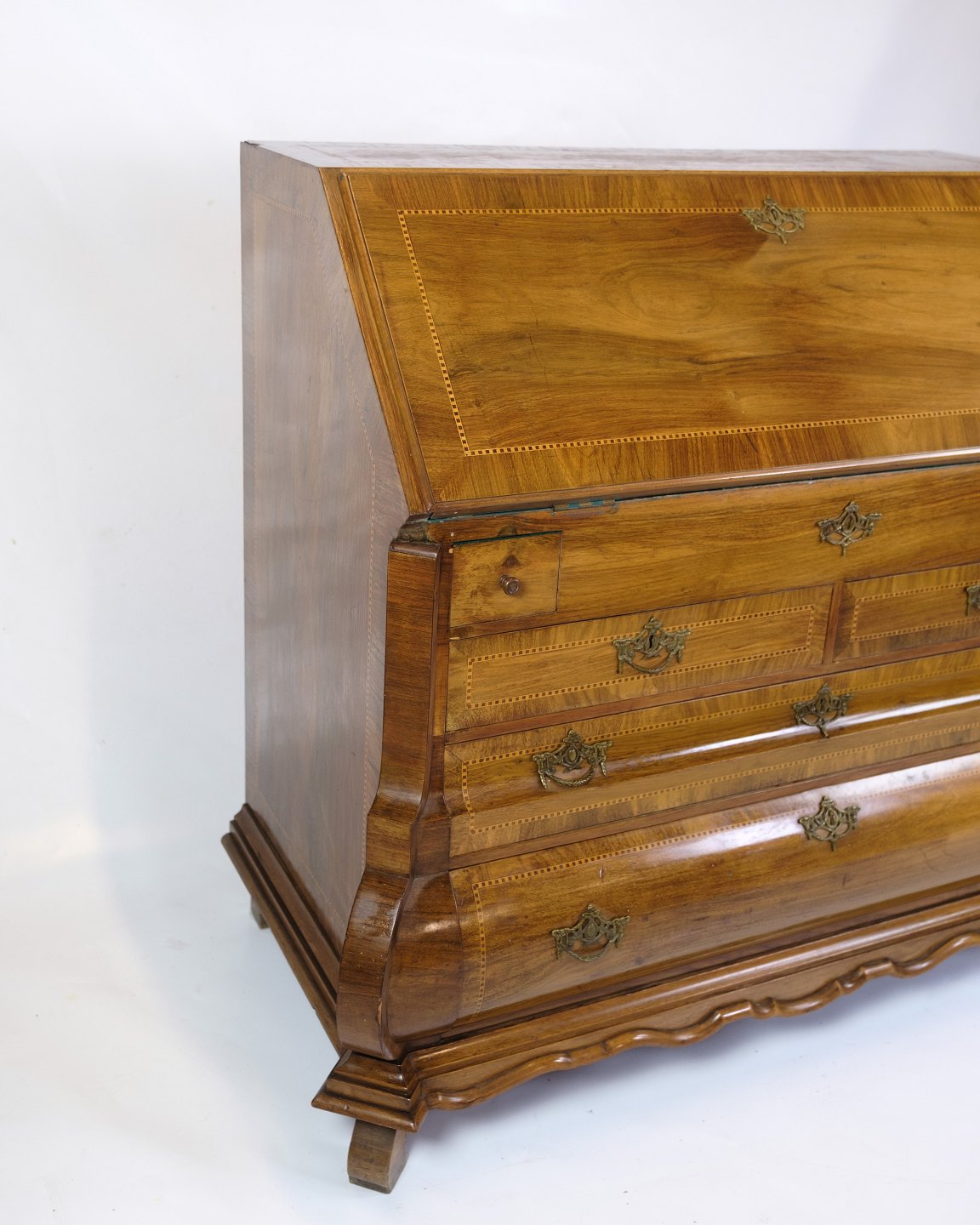 Chatol with four drawers, inlay and with interior painting. The chatol is made of light walnut and manufactured by the furniture factory Lysberg & Hansen, from around the year 1890.