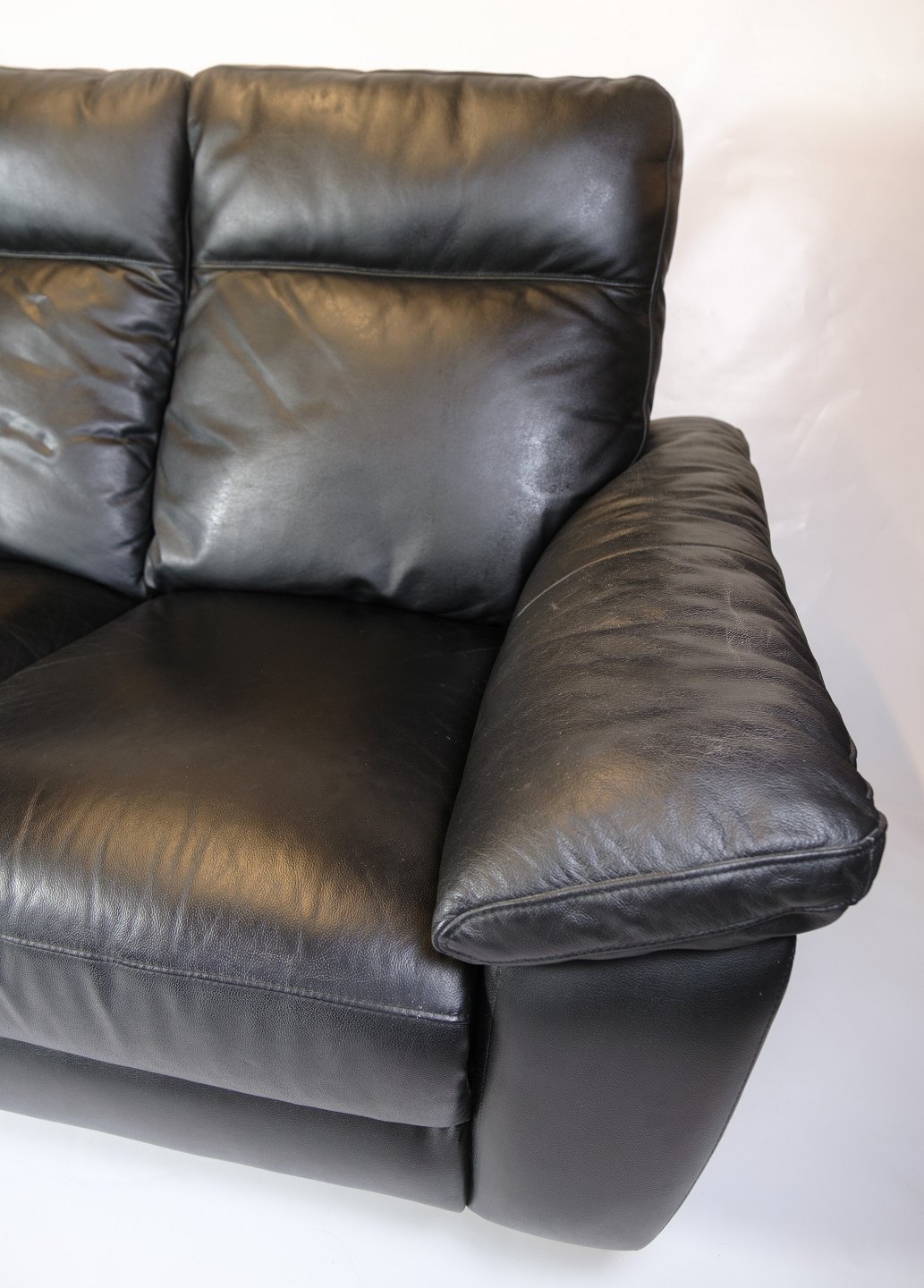 3-personers sofa fremstillet i sort læder. Sofaen er udstyret med justerbart ryglæn og benstøtte, som betjenes elektronisk. Den fremstår i pæn stand, og al elektronik er testet og fungerer korrekt.