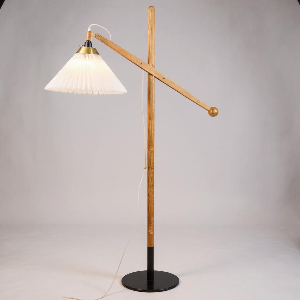 Floor lamp, model 325 by Le Klint, designed by Vilhelm Wohlert in teak with original shade from around the 1950s, Denmark. It is a rather sought-after floor lamp, due to its age and good condition.