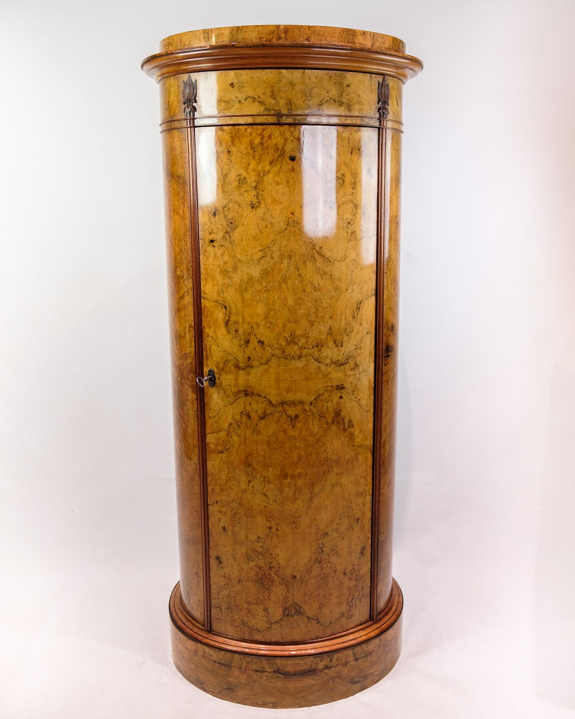 Ovalt piedestalskab fra omkring 1840’erne, udført i valnød og med håndpoleret overflade.