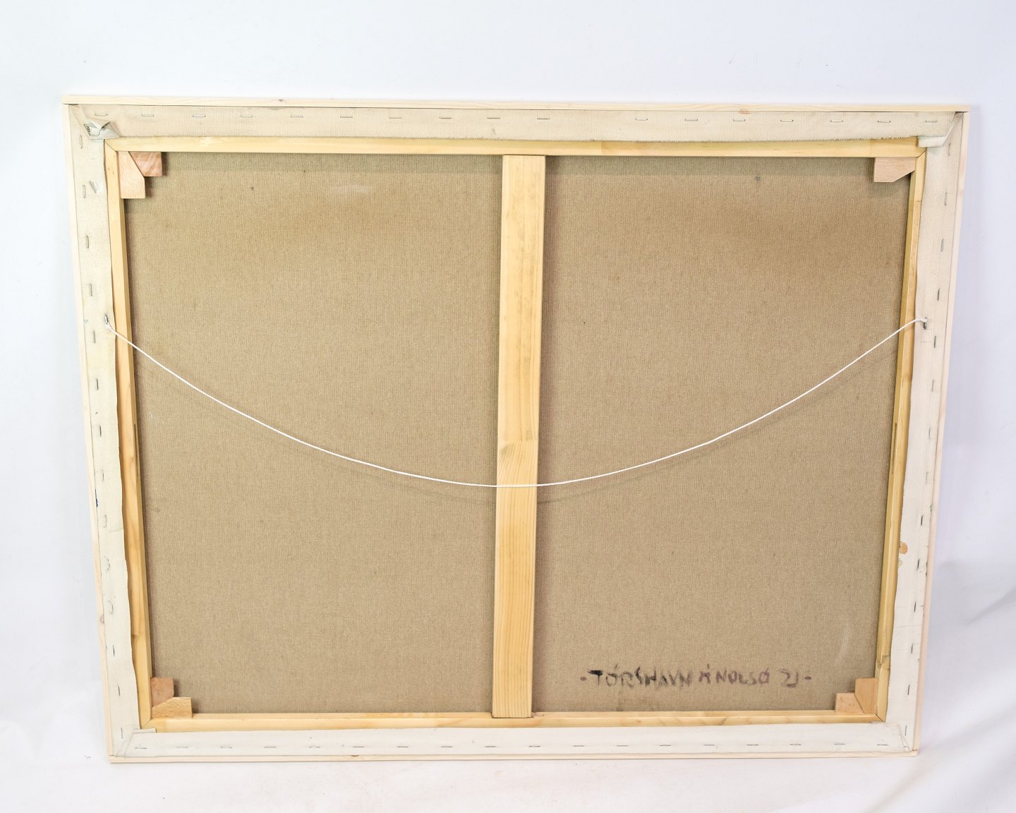 Kontakt os vedrørende prisFarverigt maleri udført af den færøske kunstner Zakarias Heinesen (f. 1936), malet med oliemaling på lærred. Motivet viser udsigt over Tórshavn i karakteristisk ekspressiv stil, hvor lys og farver smelter sammen i et atmosfærisk helhedsbillede. Signeret nederst til højre og dateret 2021.