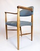 Danish armchair in teak with blue fabric seat designed by Kurt Olsen in the 1960s.