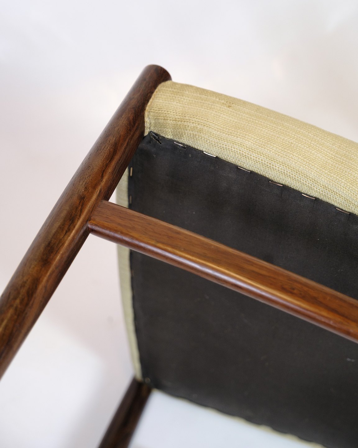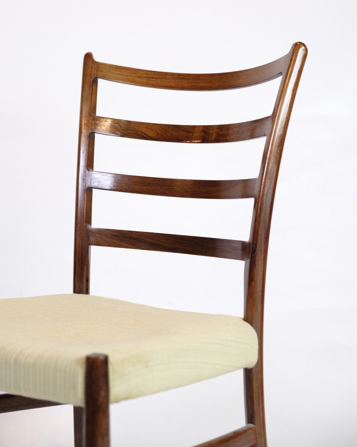 Dining chair in rosewood with light wool fabric, designed by N.O. Møller in the 1960s.