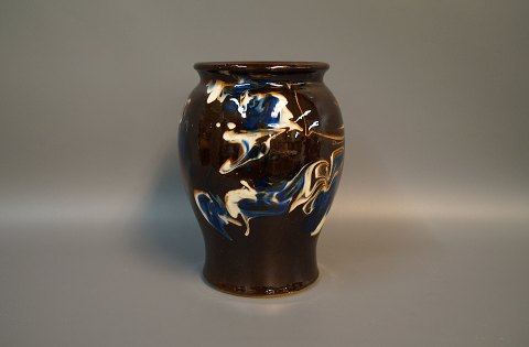TV-møbel i gråolieret eg med jalousilåger og rundede former. Dansk design.