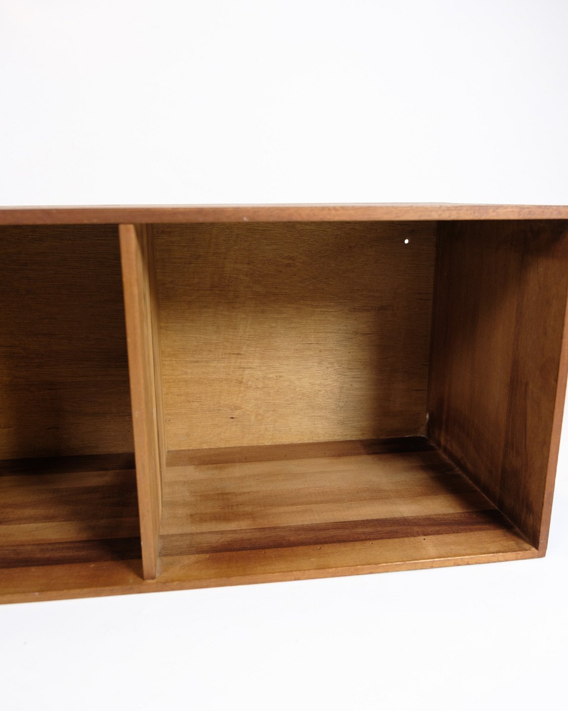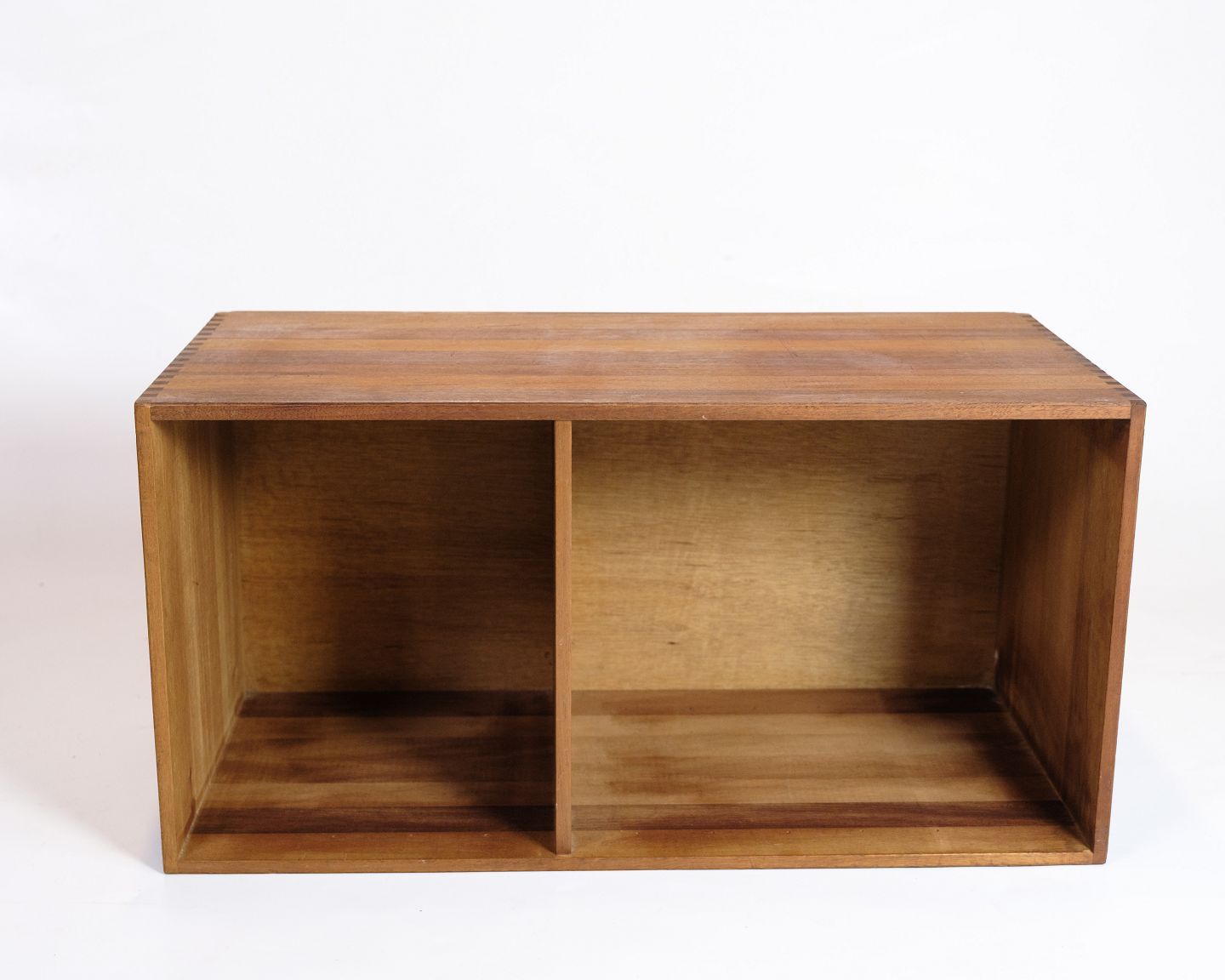 SoldBookcase in teak with mortise joints, Danish design from the 1960s. The bookcase is divided into two compartments and is well suited as both a wall-mounted unit or a standing module in a bookcase composition.