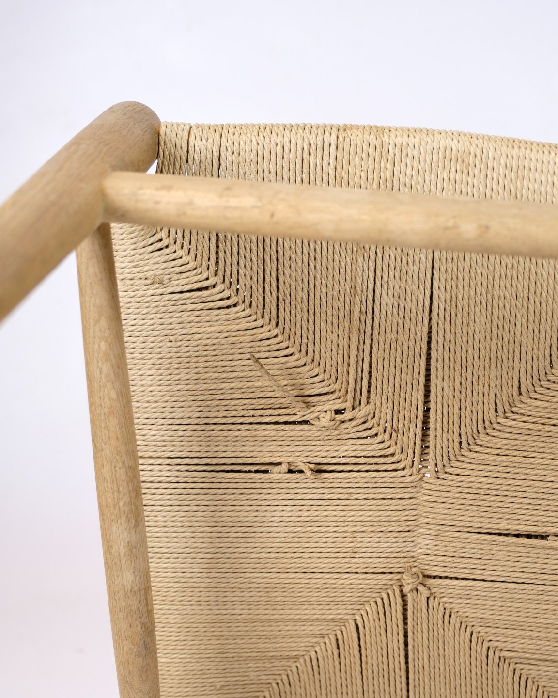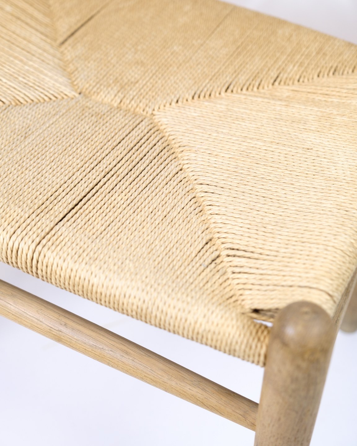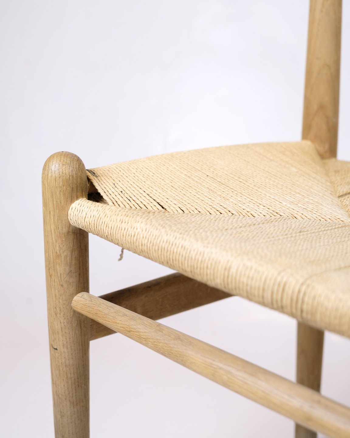The chair is made of solid oak with a seat in hand-woven paper yarn.