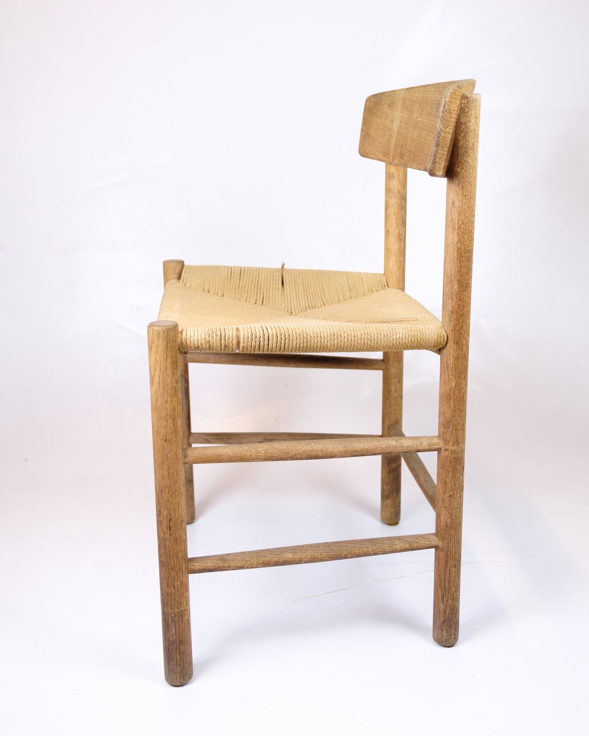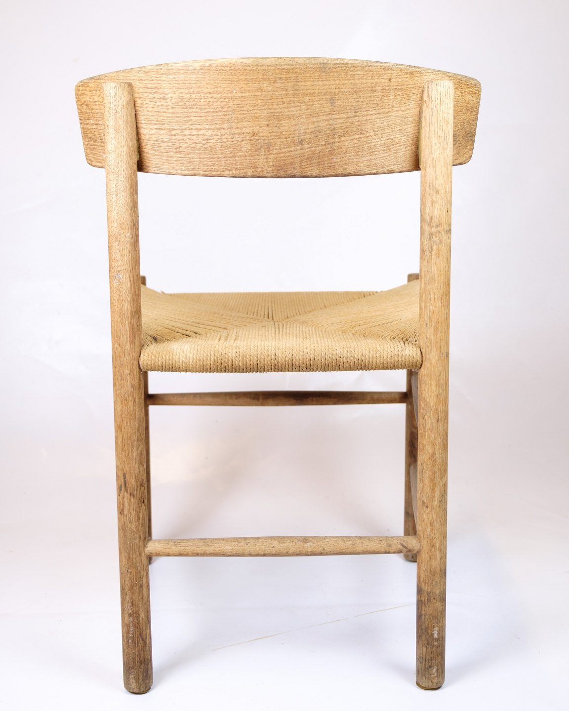 SoldJ39 Folkestolen by Børge Mogensen for FDB Møbler. Oak with paper yarn weave. Danish design classic from the 1960s.