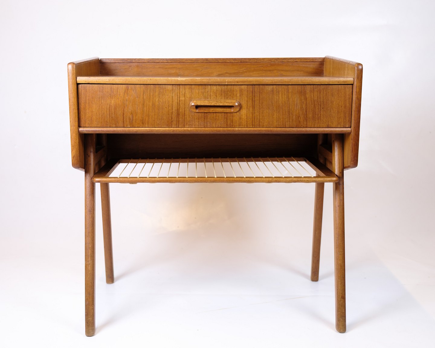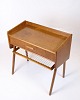 Side table/nightstand in teak with drawer and wicker shelf. Danish design from the 1960s. Elegant and functional furniture in great condition.