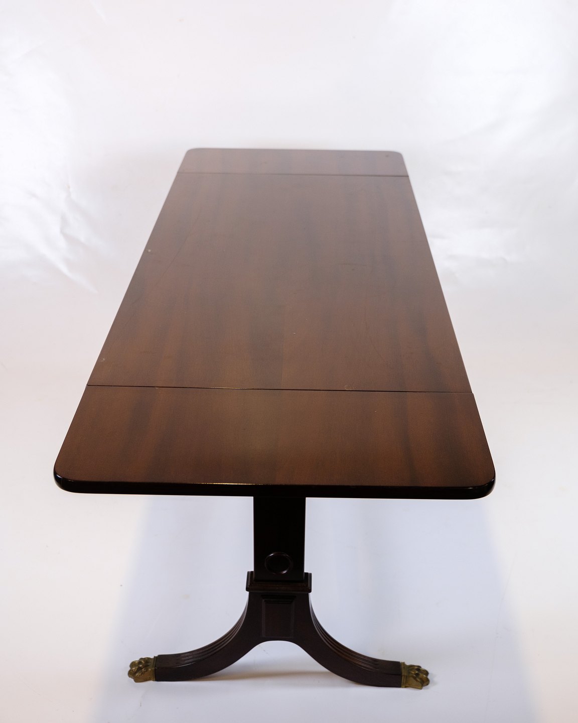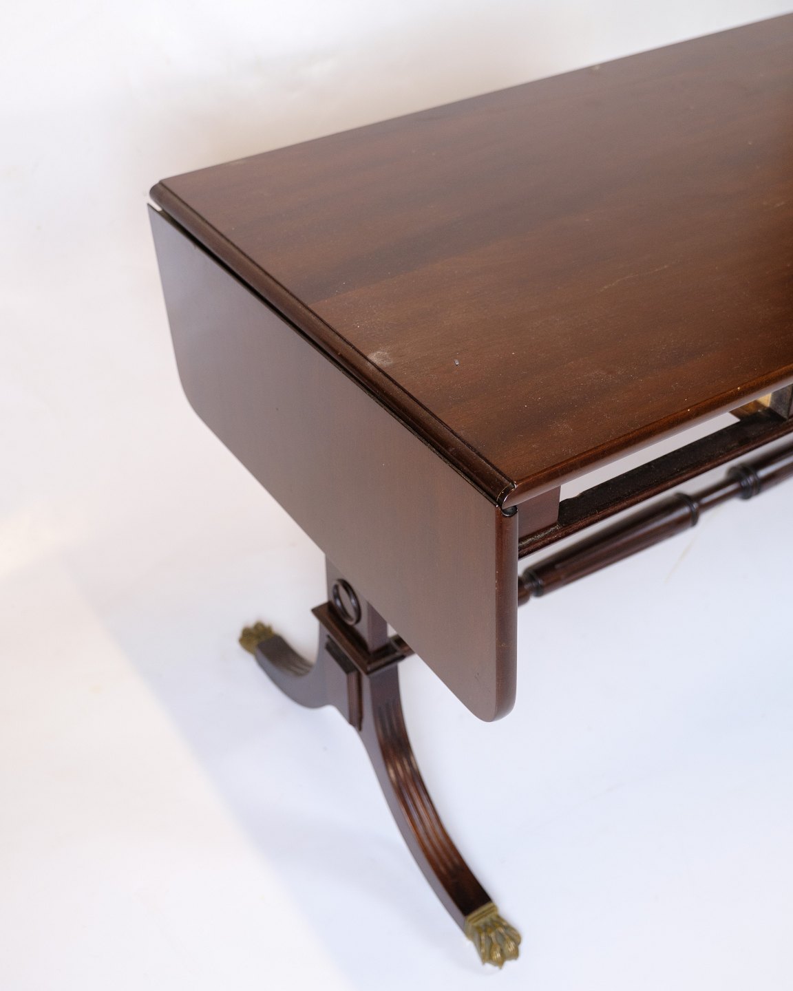 Mahogany coffee table from the 1960s, made in the style of Hepplewhite. The table has flaps on both sides, which can be folded up to expand the tabletop, providing both flexibility and functionality.