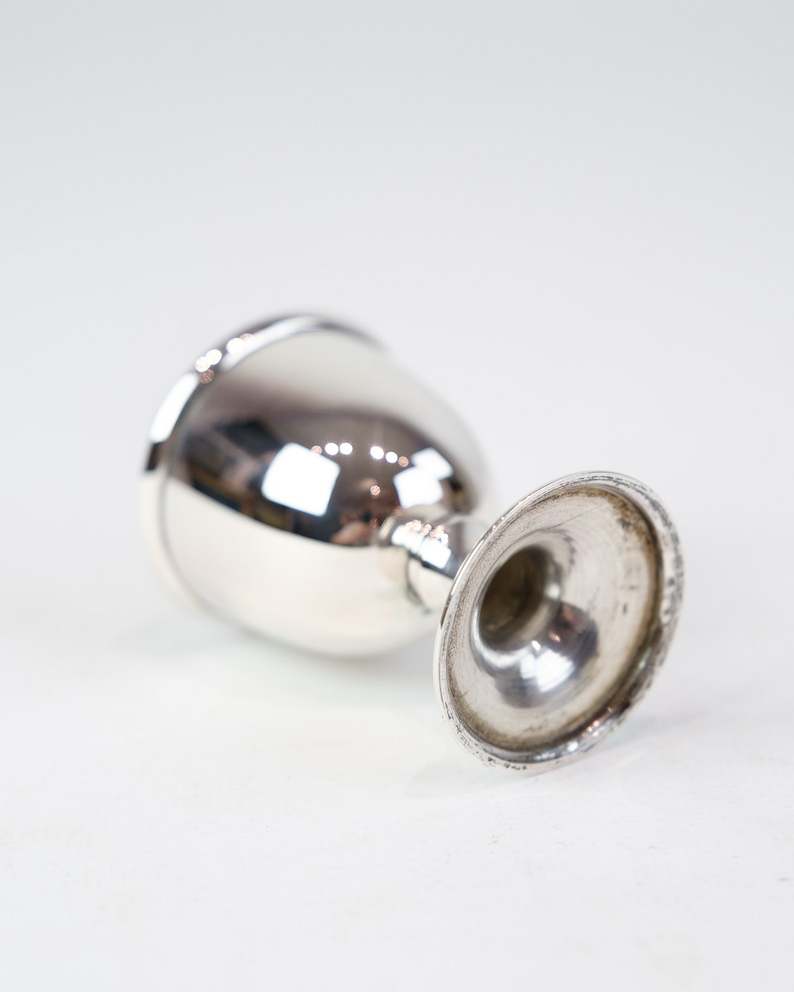 SolgtÆggebæger i ægte sølv. Enkelt design uden indgravering. Højde 6,3 cm, diameter 4,5 cm.