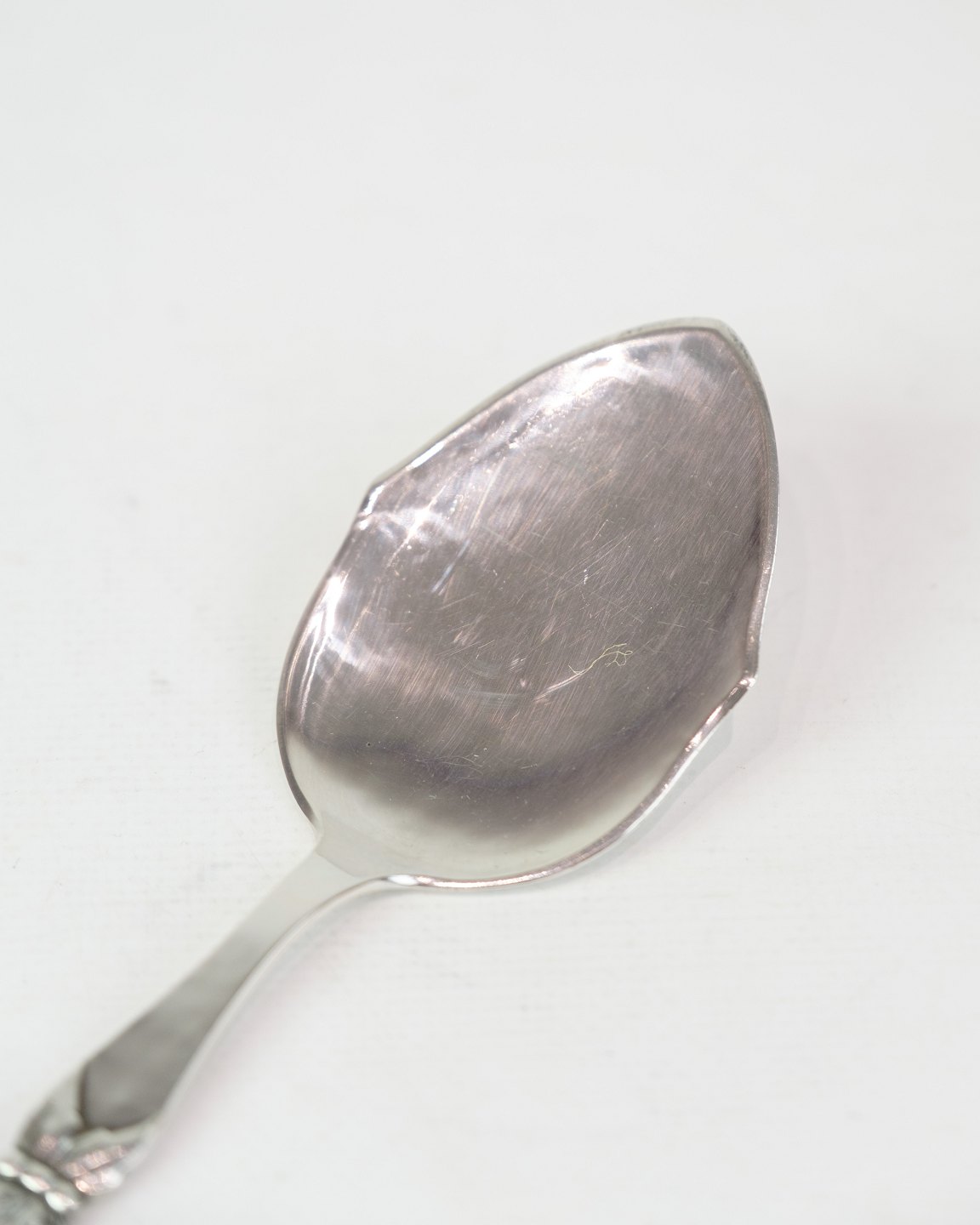 Kagespartel i tretårnet sølv, stemplet 825. Fremstillet af A.C. Illum, København ca. 1950–1970. Længde 14,5 cm. Illums Bolighus var kendt for deres høje kvalitet.