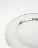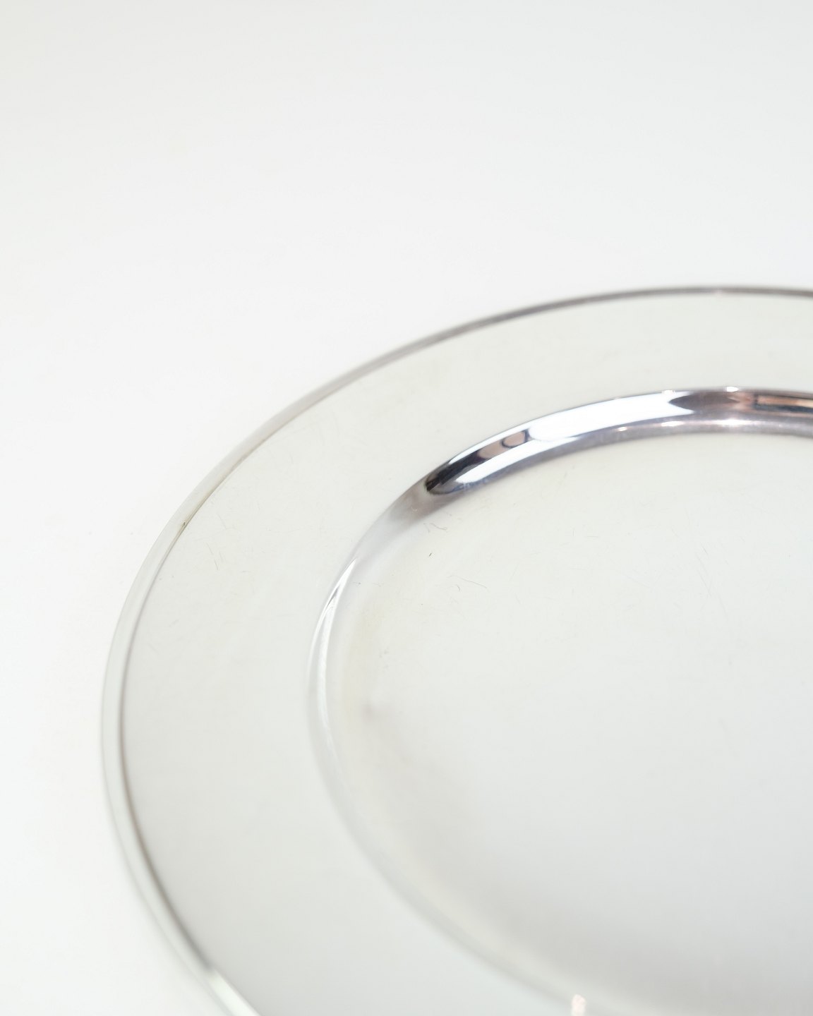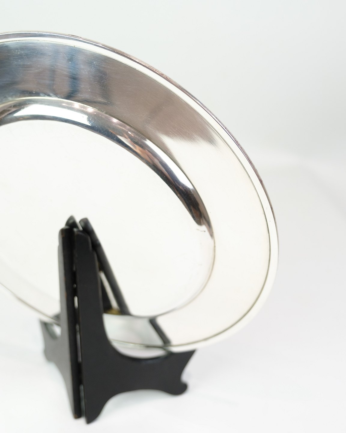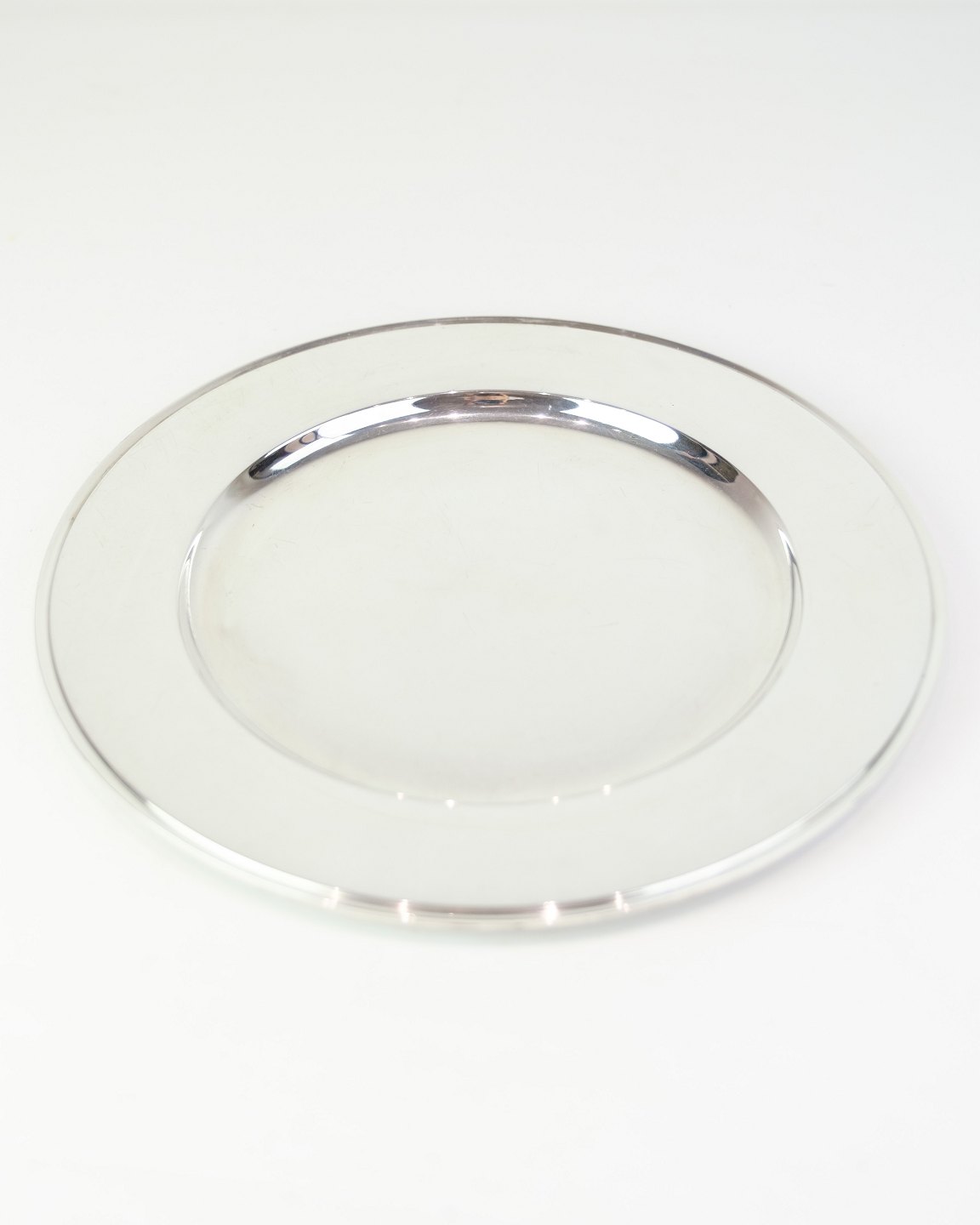 Georg Jensen dækketallerken i sterling sølv, Pyramide model No. 600E. Diameter 26 cm, vægt 522 g. Elegant dansk designklassiker.