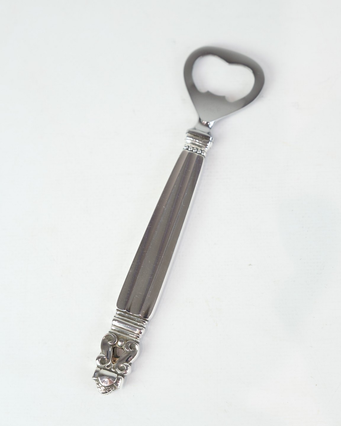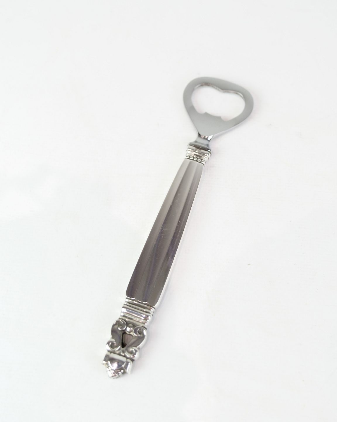 Georg Jensen bottle opener in King pattern. Sterling silver and stainless steel. Design by Johan Rohde. Length 16 cm.