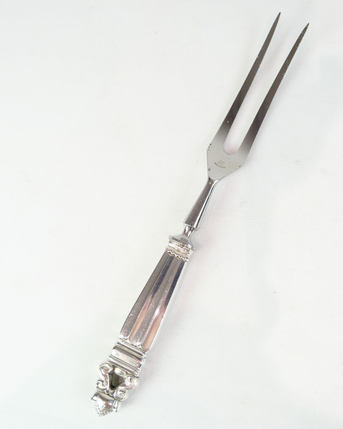 Georg Jensen forskærergaffel i sølv, mønster Konge. Designet af Johan Rohde i 1915. Længde 25 cm. Klassisk dansk sølvarbejde.