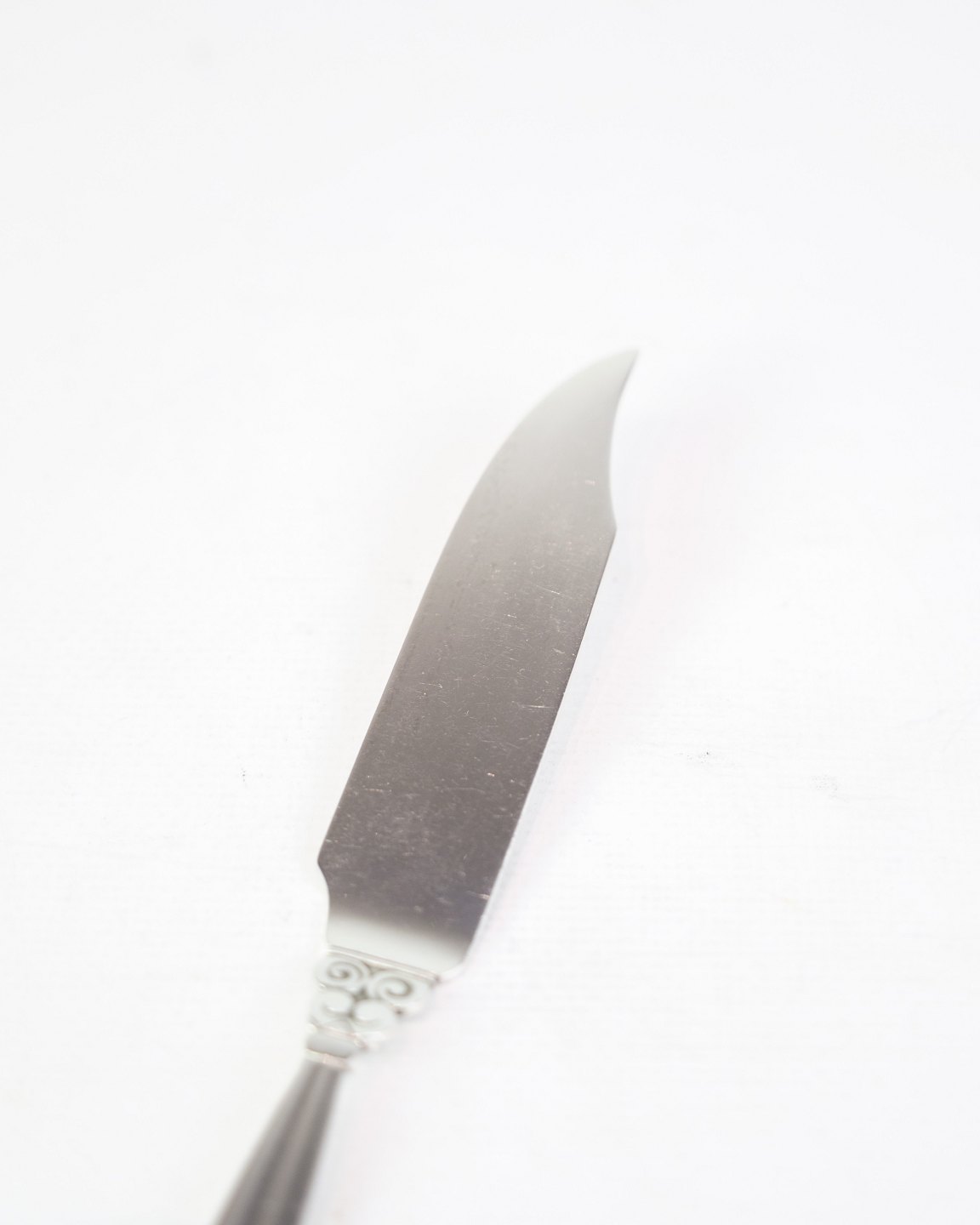 Georg Jensen fiskekniv i sterling sølv. Konge mønster, design af Johan Rohde 1915. Model No. 62. Længde 20,5 cm.