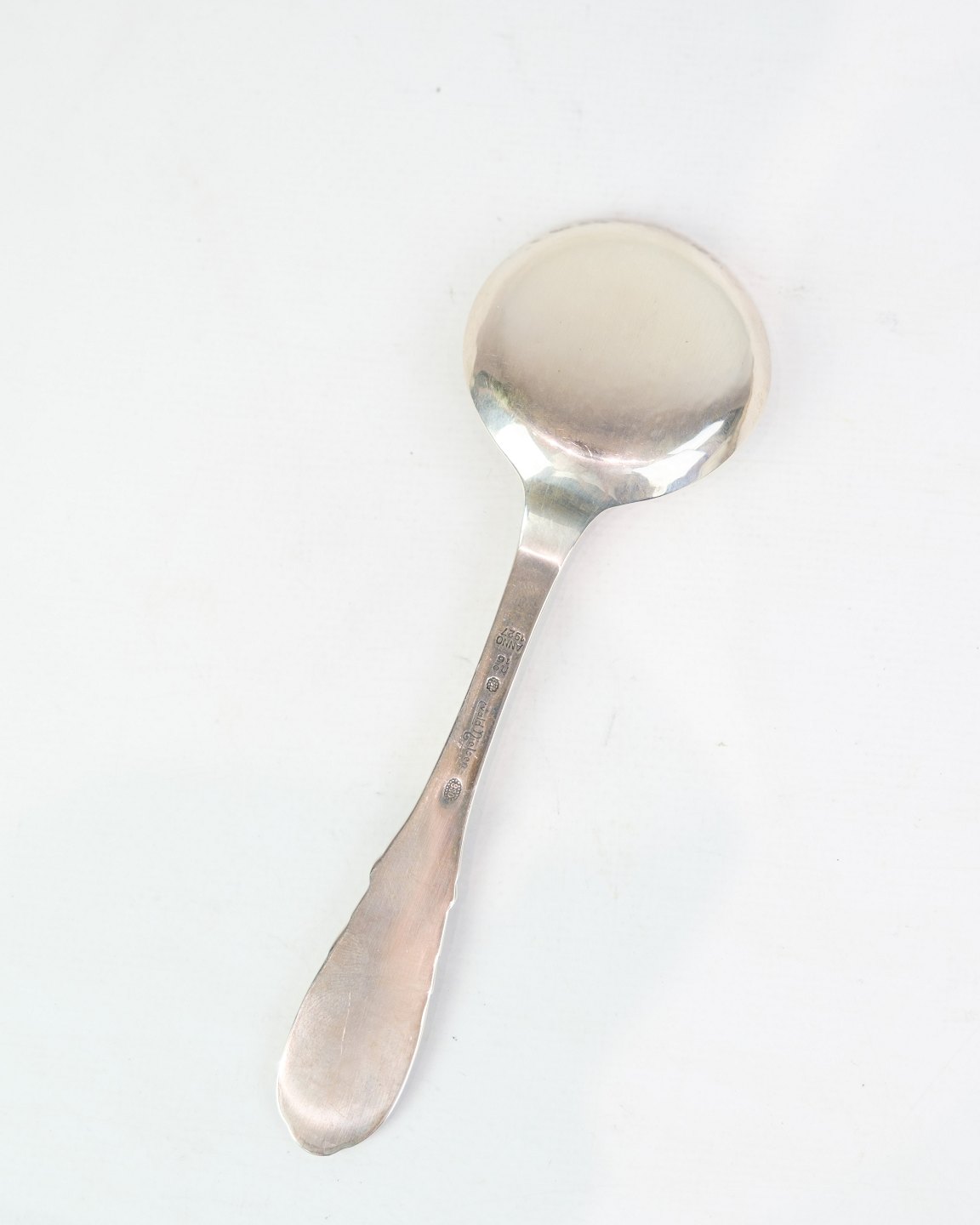 Evald Nielsen marmeladeske i ægte sølv. Hammerslået mønster, Model No. 16. Længde 16,5 cm. Klassisk dansk sølvarbejde.