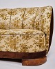 Danish banana sofa from the 1930s-40s. Floral upholstery and oak legs. H: 67 cm, W: 200 cm, D: 69 cm, SH: 36 cm. Classic Danish furniture craftsmanship