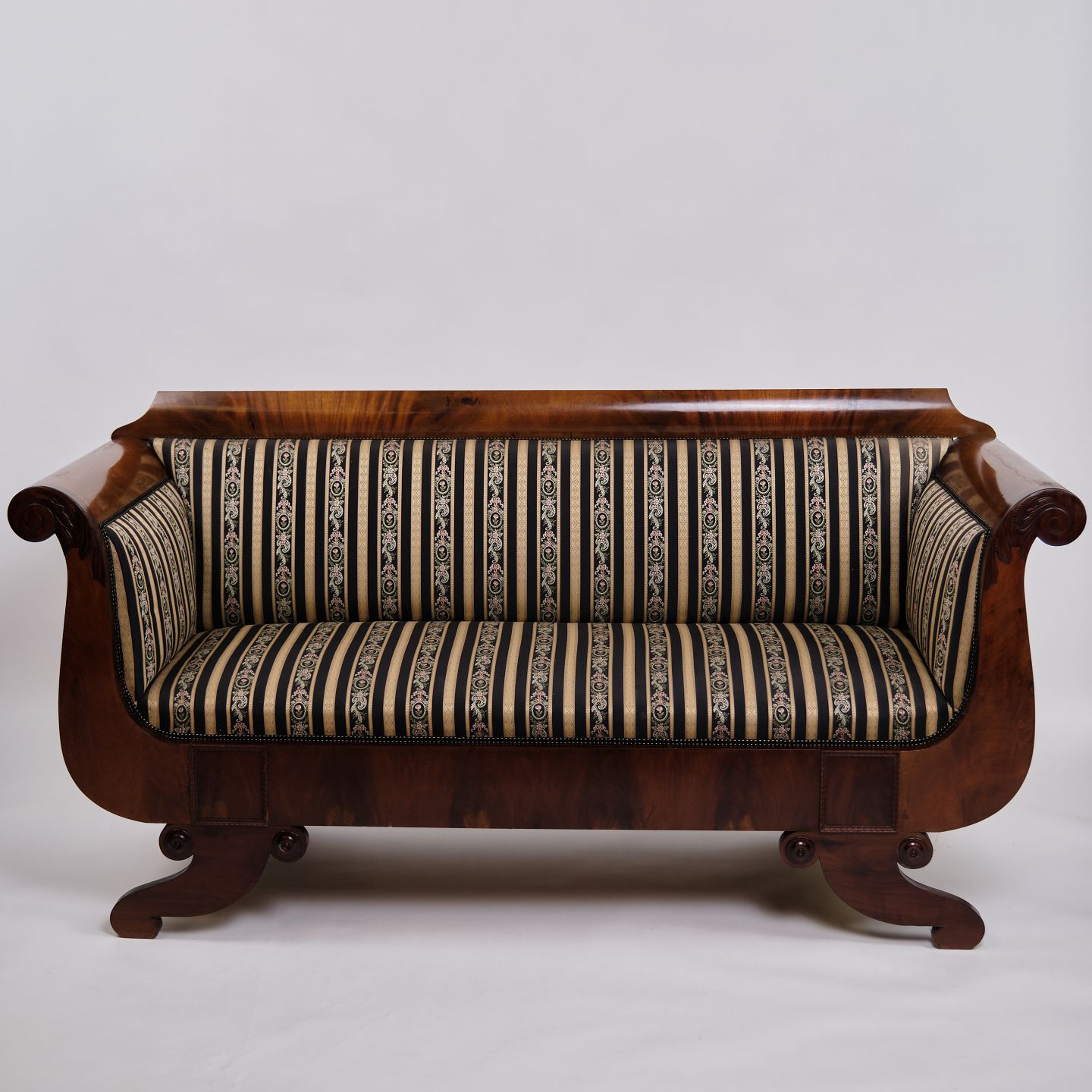 Antique Sofa - Empire Style - Striped Upholstery - Mahogany - 1830s