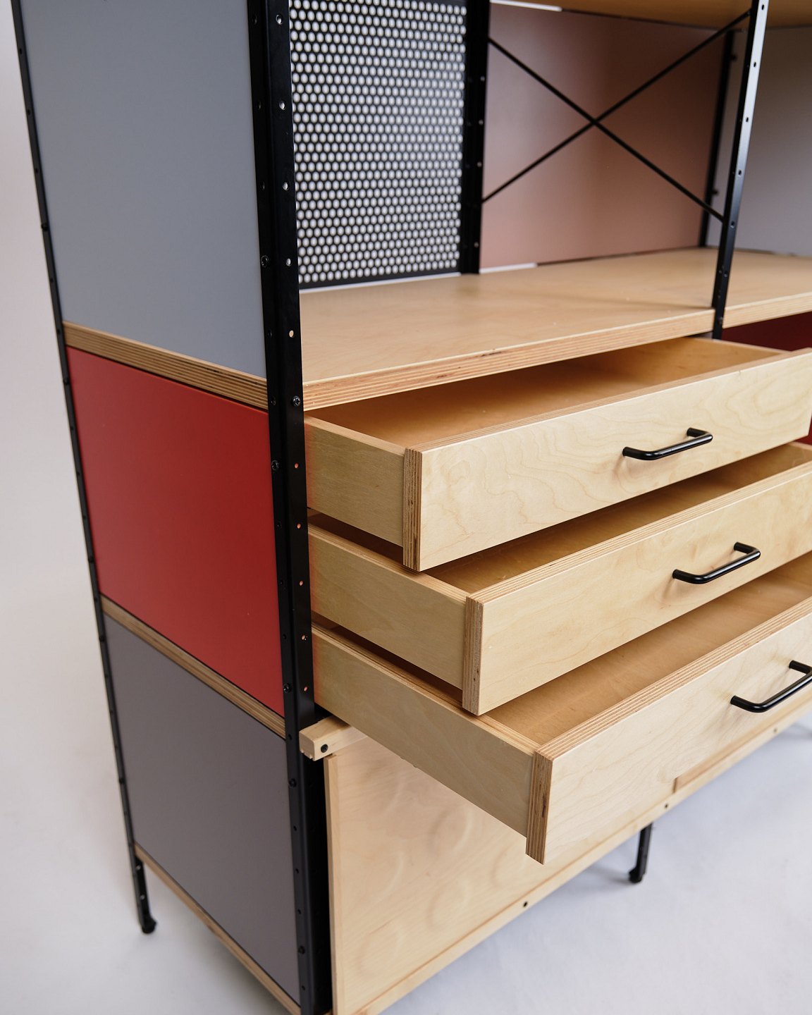 ESU bogreol designet af Charles og Ray Eames i 1949 og produceret af Vitra. Reolen er udført i ahorn og birketræ med et grafisk, modulært udtryk, som kombinerer funktionalitet og tidløs modernisme.