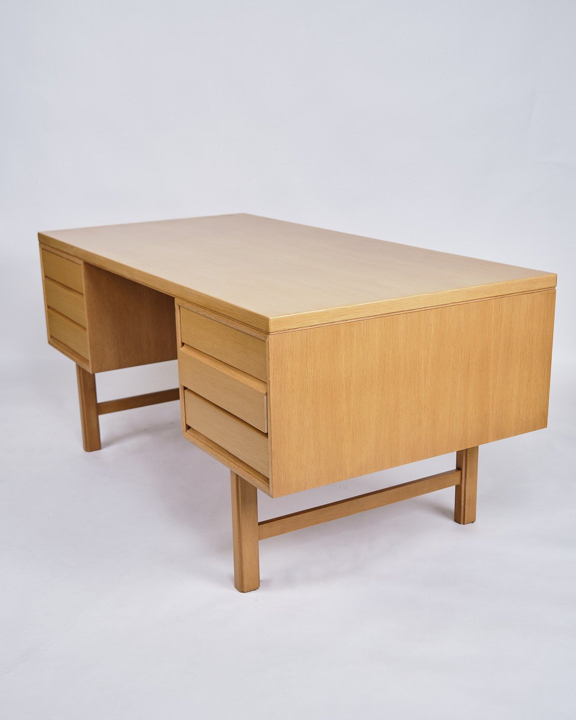 Fritstående Skrivebord - Seks Skuffer - Egetræ - Omann Junior - Dansk Design - 1960erne