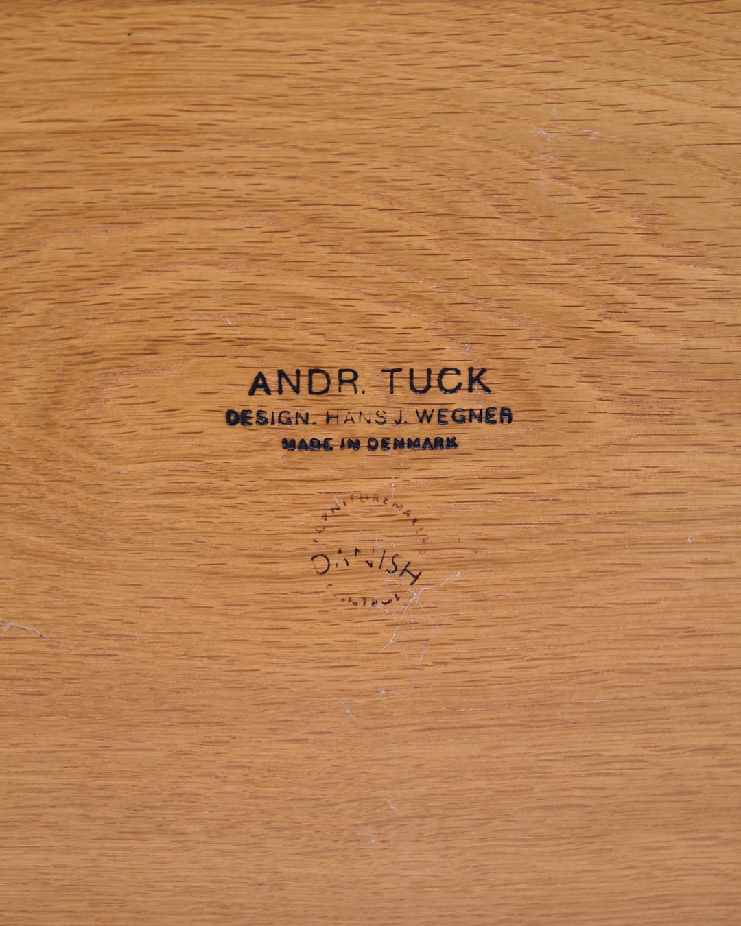 Sewing table, model AT-33, designed by Hans J. Wegner and produced by Andreas Tuck in the 1950s. The table is made of soap-treated oak and equipped with a practical shelf. The tabletop can be extended from 64.5 cm to 118.5 cm, making it both flexible and functional.
