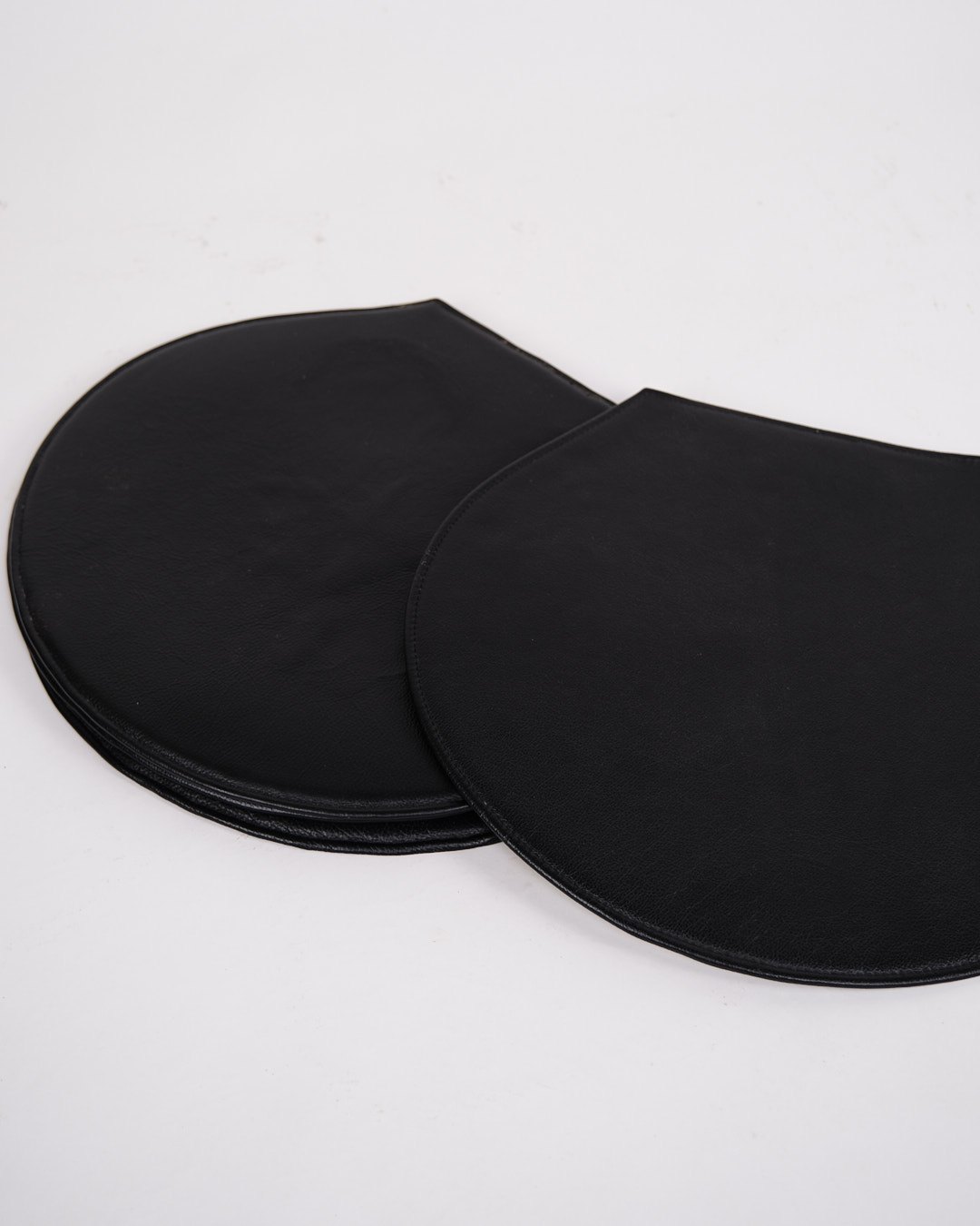 SoldSet of four black leather cushions for Arne Jacobsen chair model 3107. Fit design. Comfortable and stylish accessory for Danish design classic.