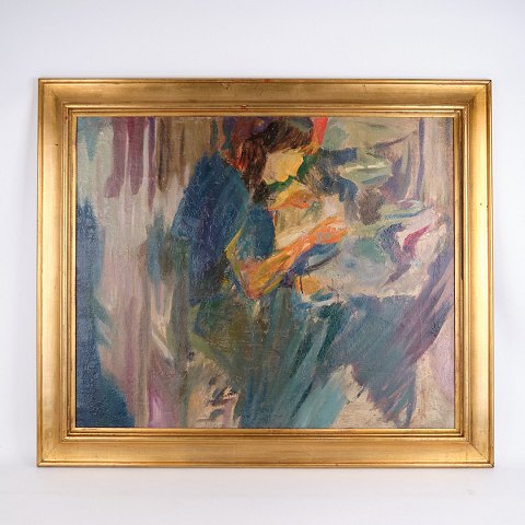 SoldAbstract oil painting of a woman from the 1930s. Oil on canvas with a gold frame.