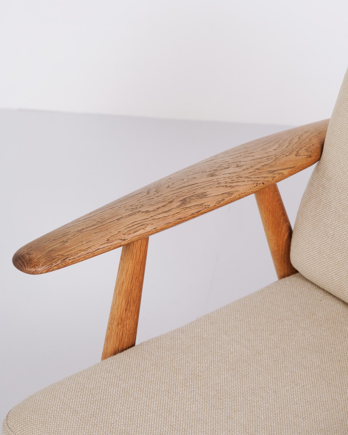 Et Par "Cigar" Lænestole - Model GE 240 - Egetræ & Lyst Stof - Hans J. Wegner - Getama - 1960erne