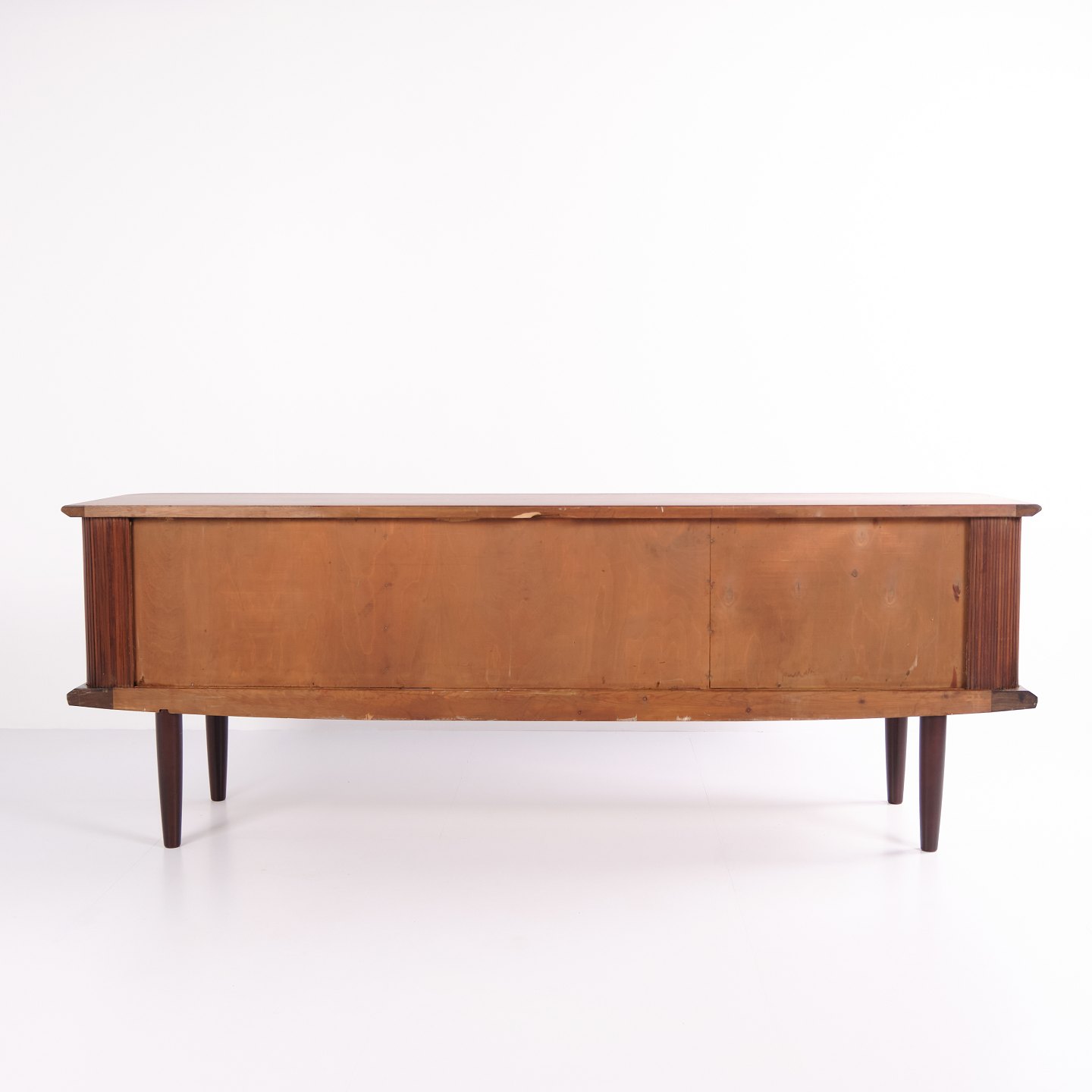 Sideboard from the 1960s, made of teak with three central drawers and louvered doors on the sides.