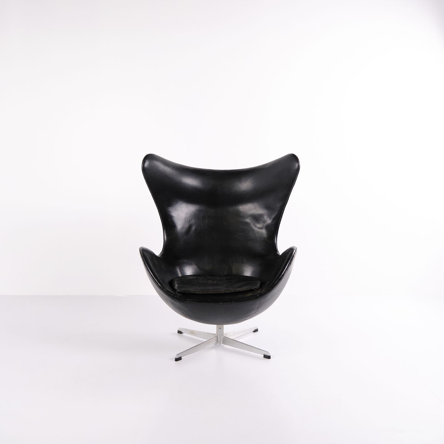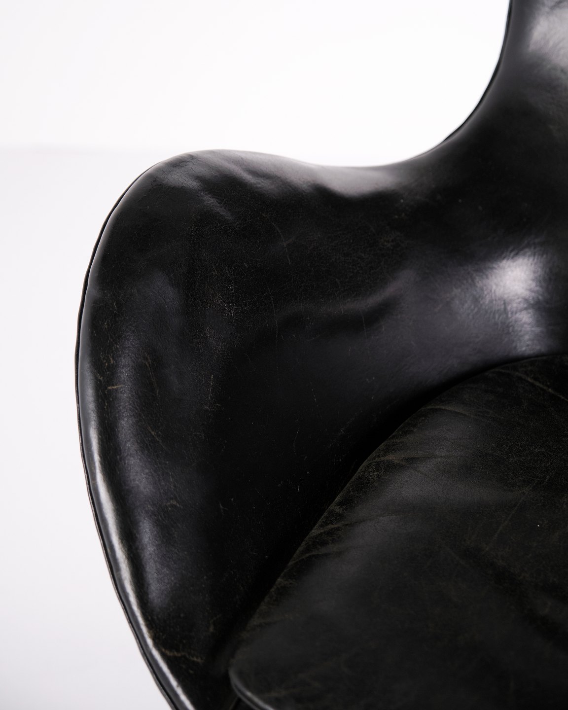 The Egg Chair – Arne Jacobsen – Black Original Leather – Fritz Hansen – 1950's - Early Model