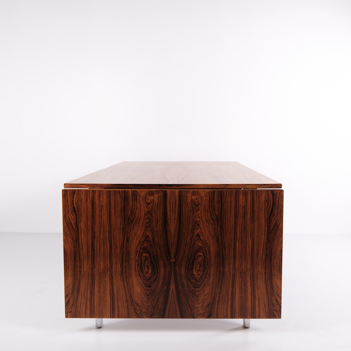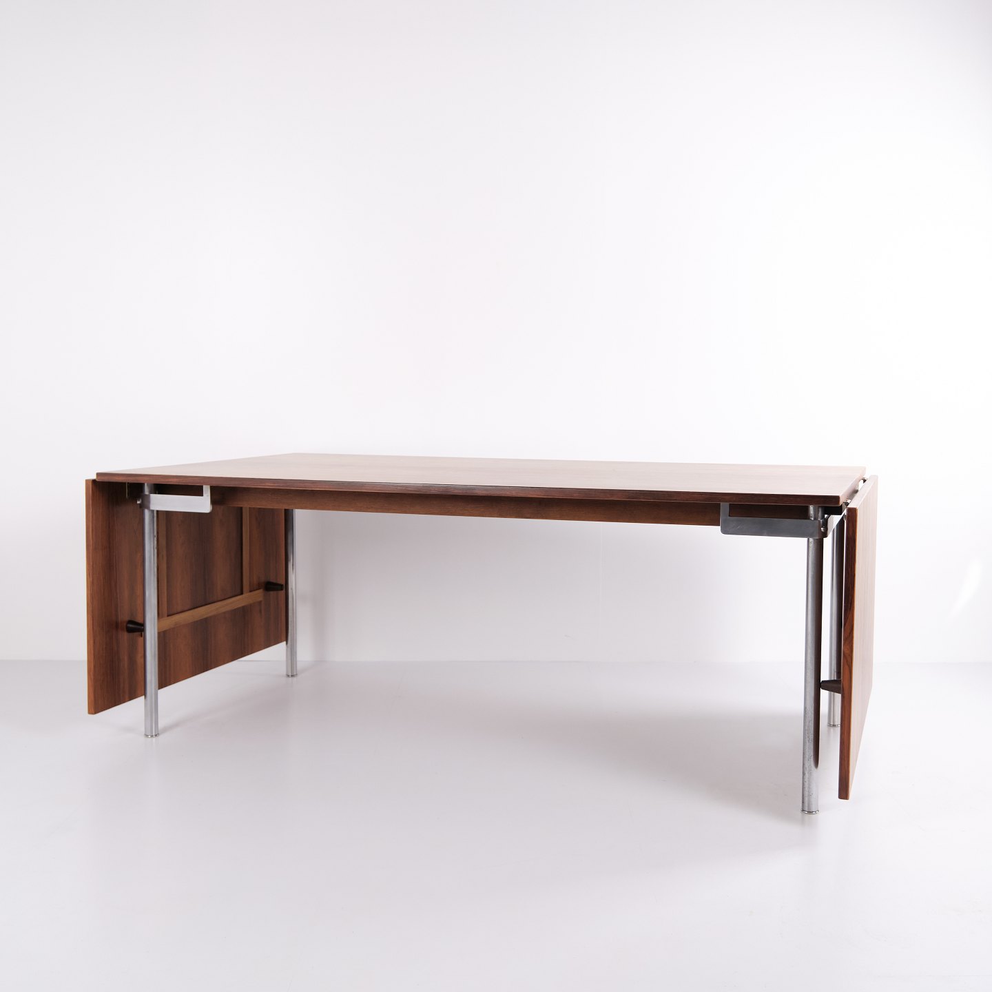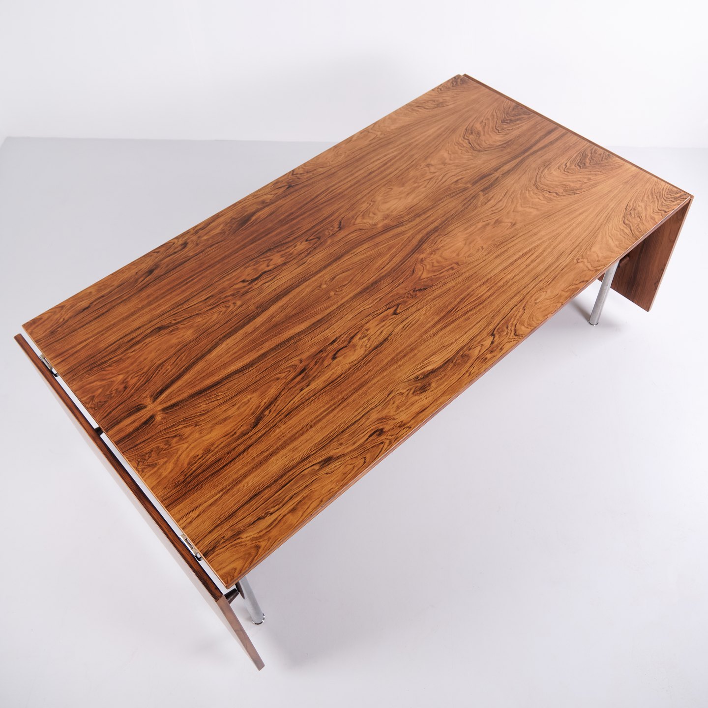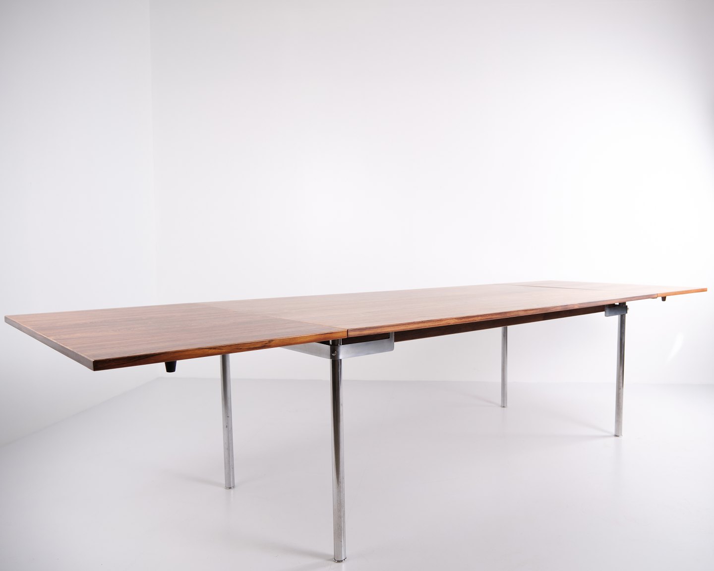 Dining table model AT 319 by Hans J. Wegner for Andreas Tuck. Rio rosewood with steel legs and 2 extension leaves. Danish design from the 1960s.