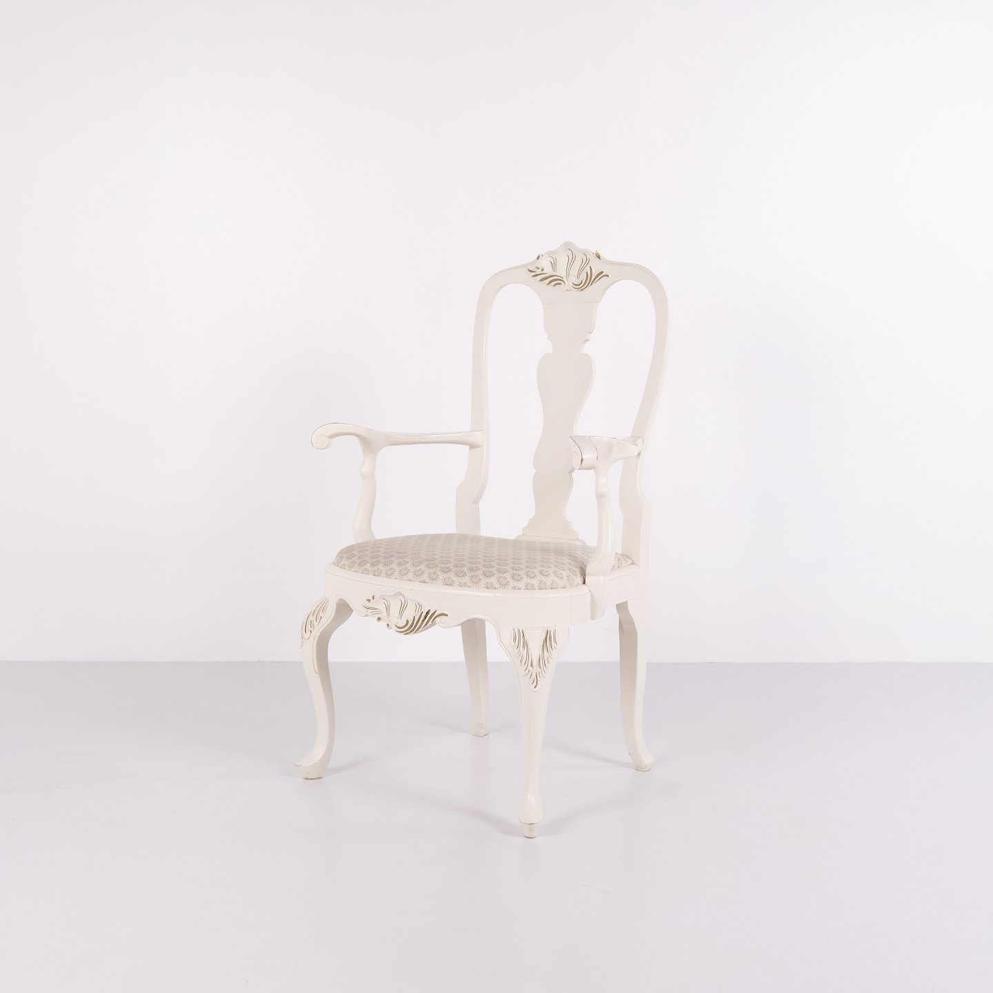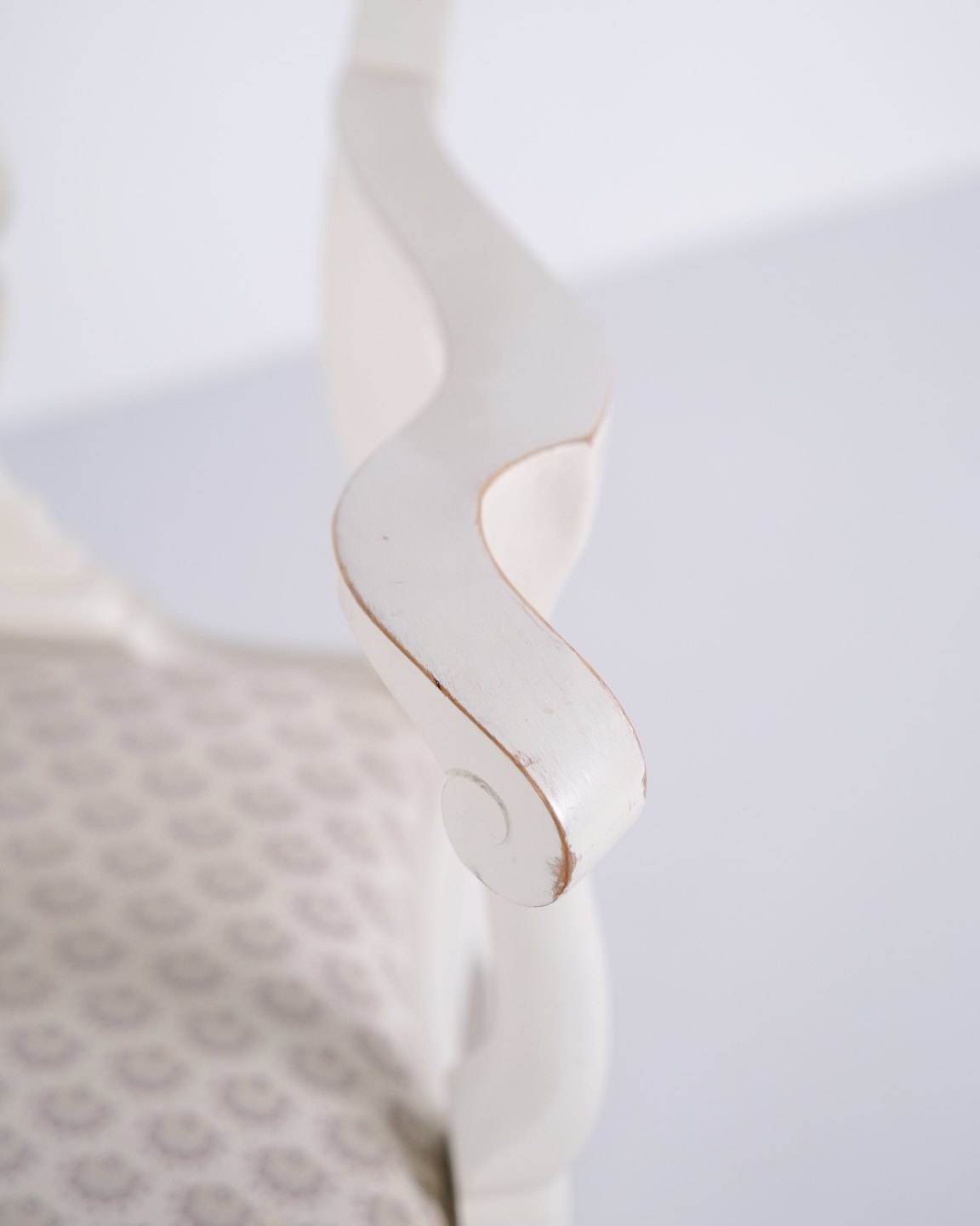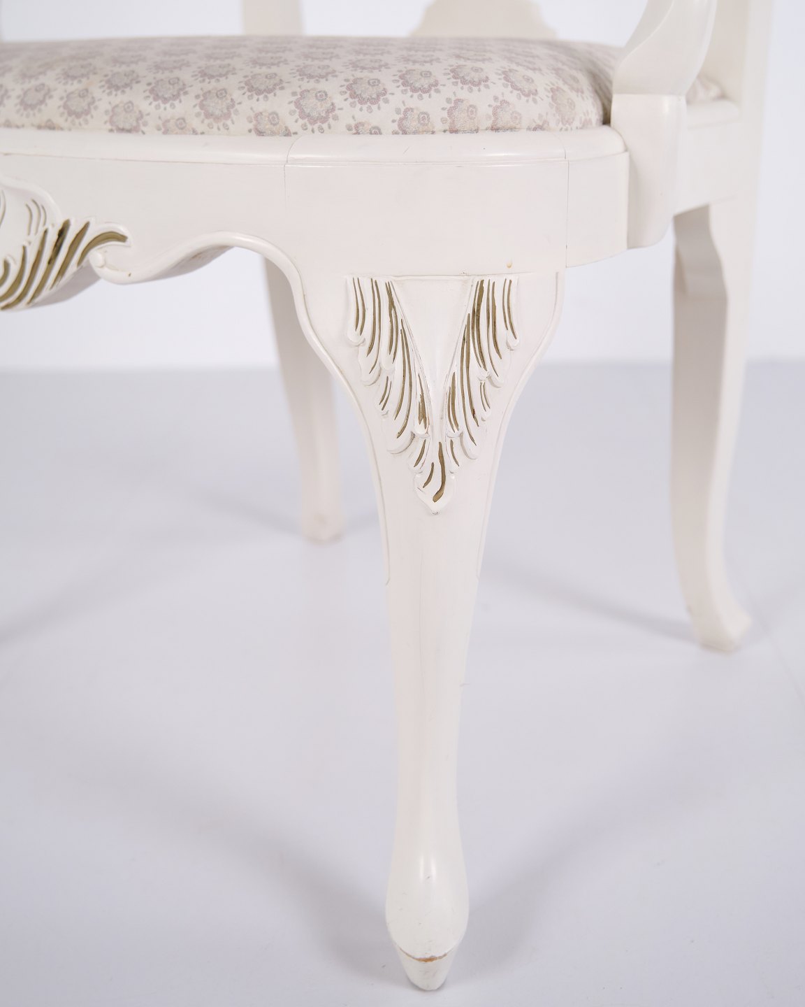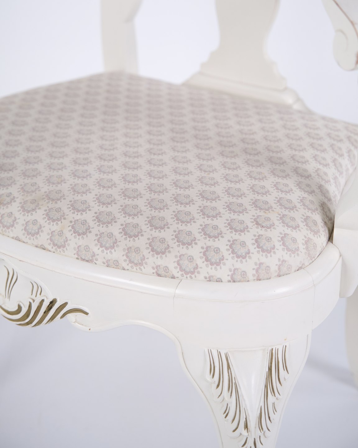 Antique armchairs from the 1920s in neo rococo style. Set of 2 white painted armchairs with decorative details. Antique rococo furniture style 1920s.