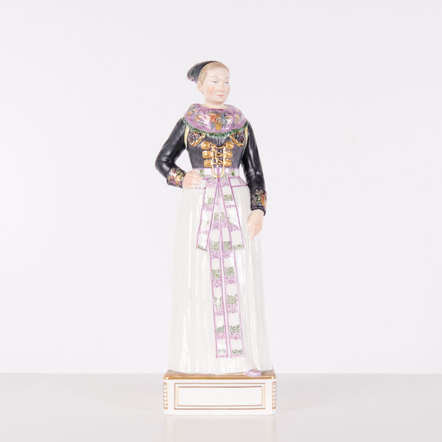The series comprises a total of 47 figures and was produced between 1906 and 1925. Carl Martin-Hansen was recognised for his work with figures, busts and public monuments and belonged to the naturalistic tradition in Danish art around the turn of the century. The Danish national costume series is regarded as one of his most significant works for Royal Copenhagen and is known for its detailed and accurate representation of regional dress.