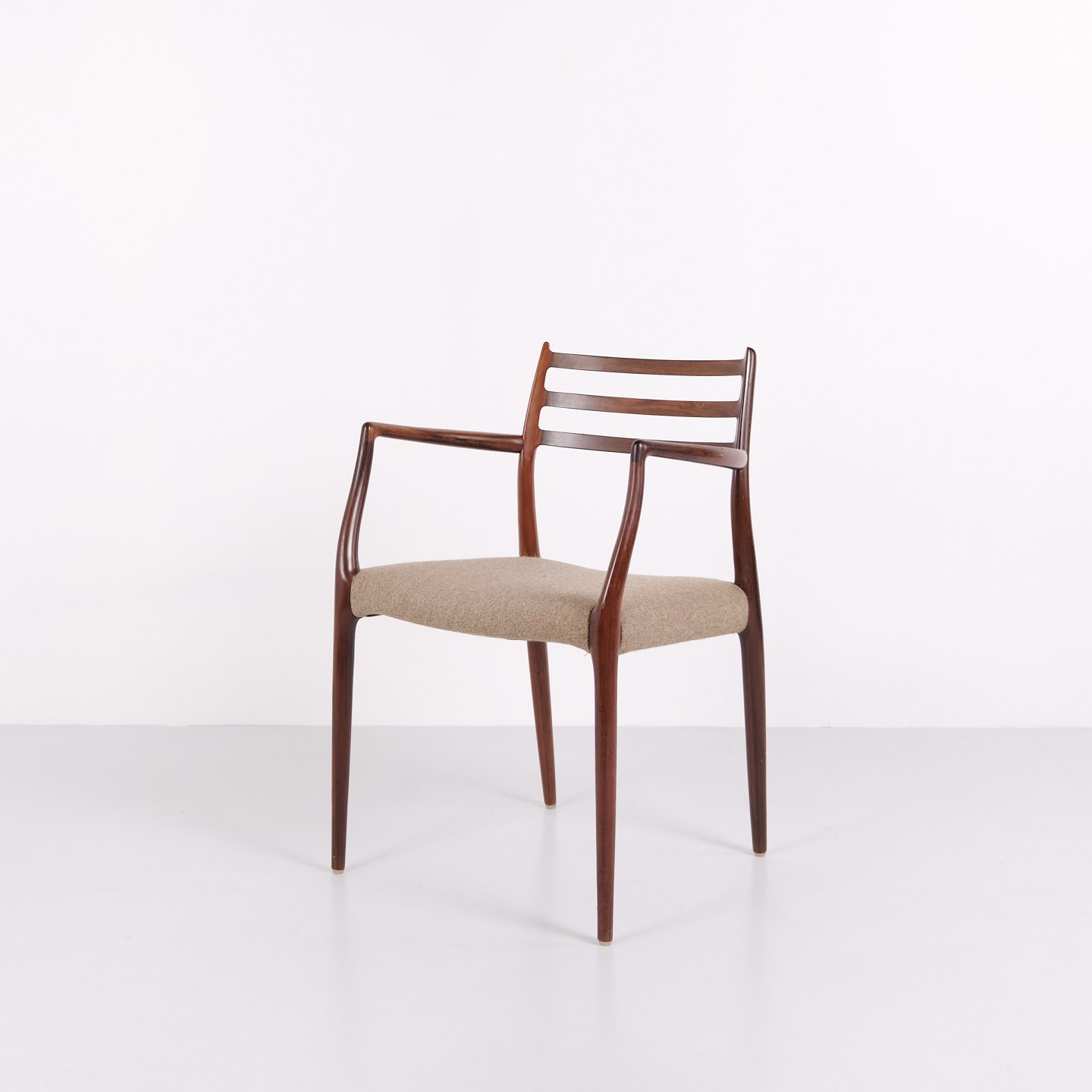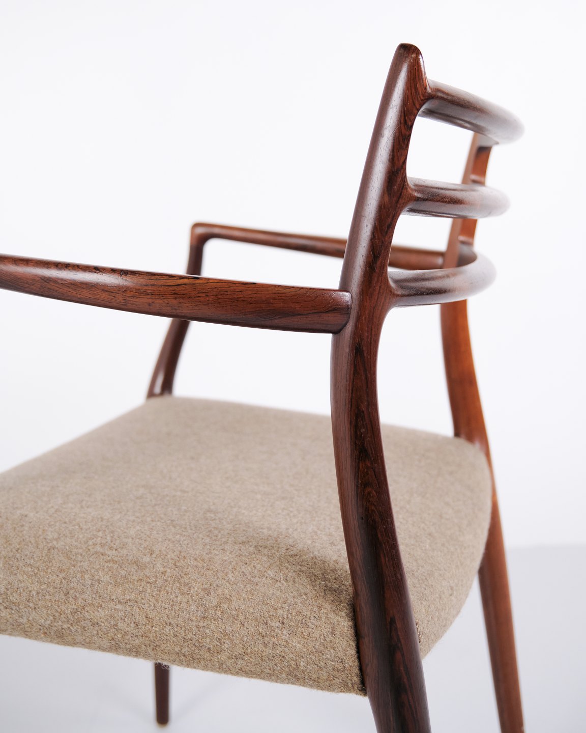 Armchairs, model 62, designed in 1962. Executed in rosewood and known for precise joinery and an ergonomic construction. Model 62 is regarded as one of Niels Otto Møller’s most recognised chair designs and represents Danish furniture design from the early 1960s.