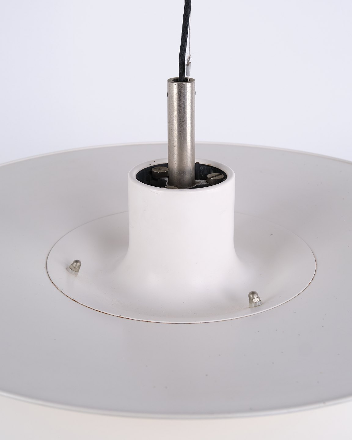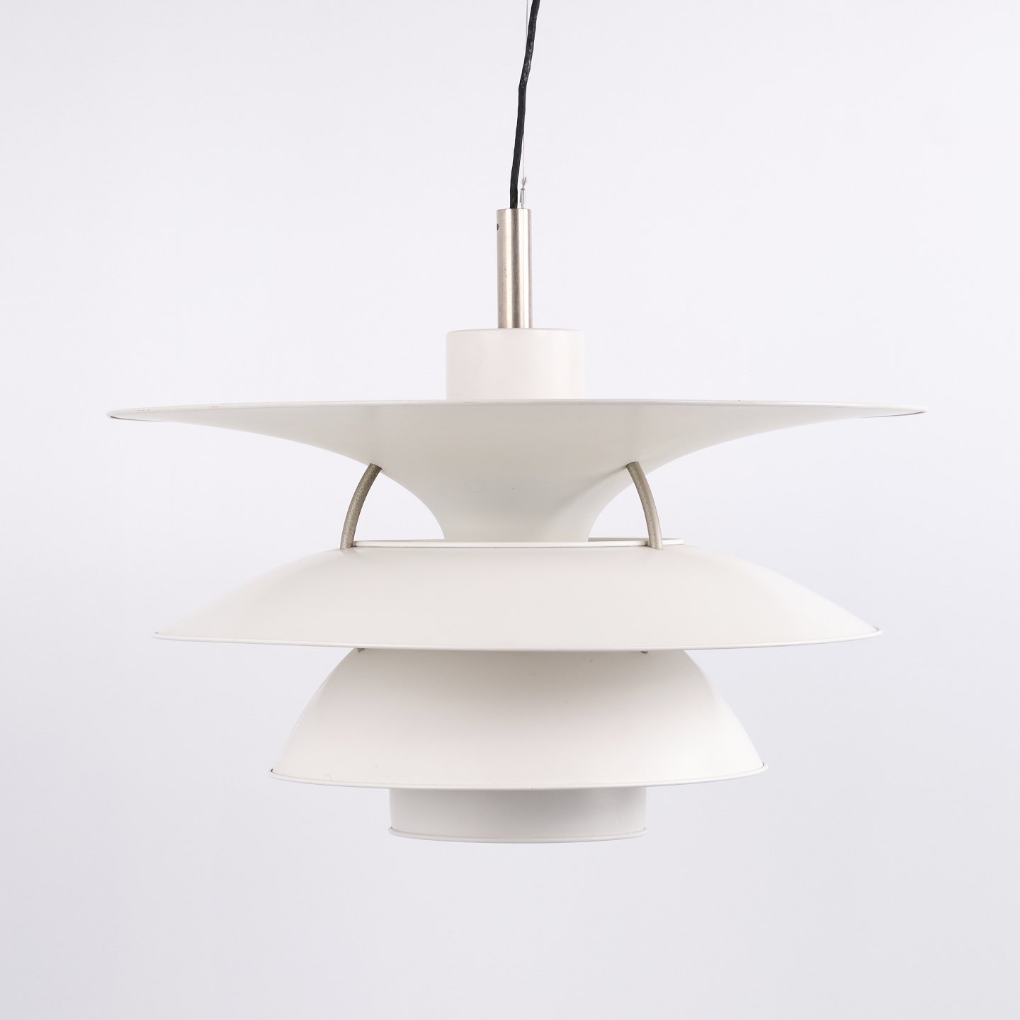 Charlottenborg pendant, model PH 6½-6, based on Poul Henningsen’s original drawings and further developed in 1979 by the architects Ebbe Christensen and Sophus Frandsen for Louis Poulsen. The lamp was redesigned for the exhibition building Charlottenborg in Copenhagen in a larger scale.